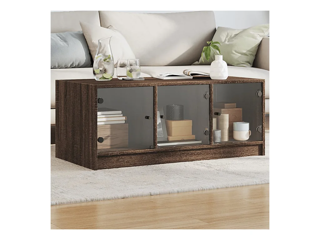 Salontafel met glazen deuren 102x50x42 cm bruin eikenkleur