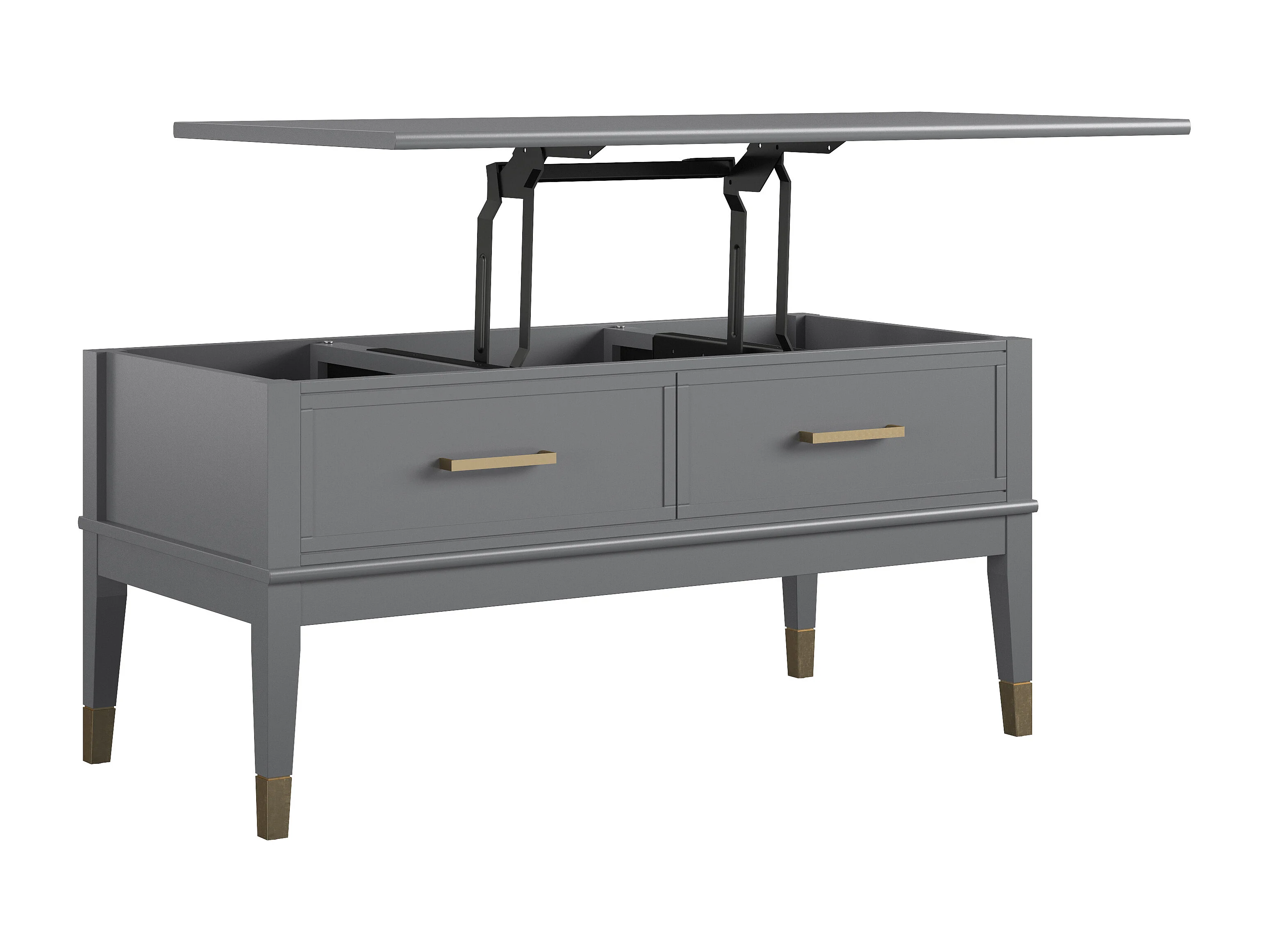 Salontafel met hefblad en 2 lades in grijze PVC gelamineerde spaanplaat