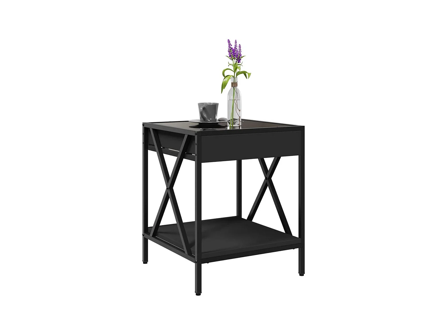 Salontafel met zwart glazen blad 30x30x41 cm staal