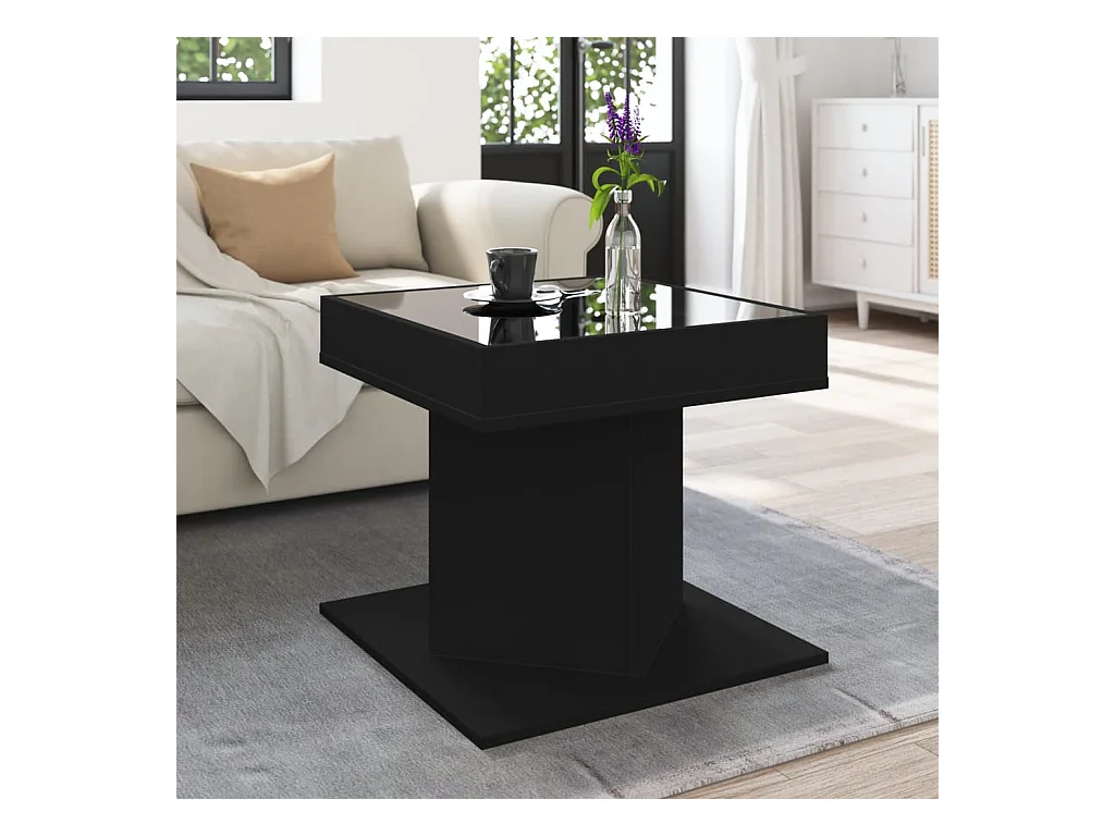 Salontafel met LED 50x50x45 cm bewerkt hout zwart