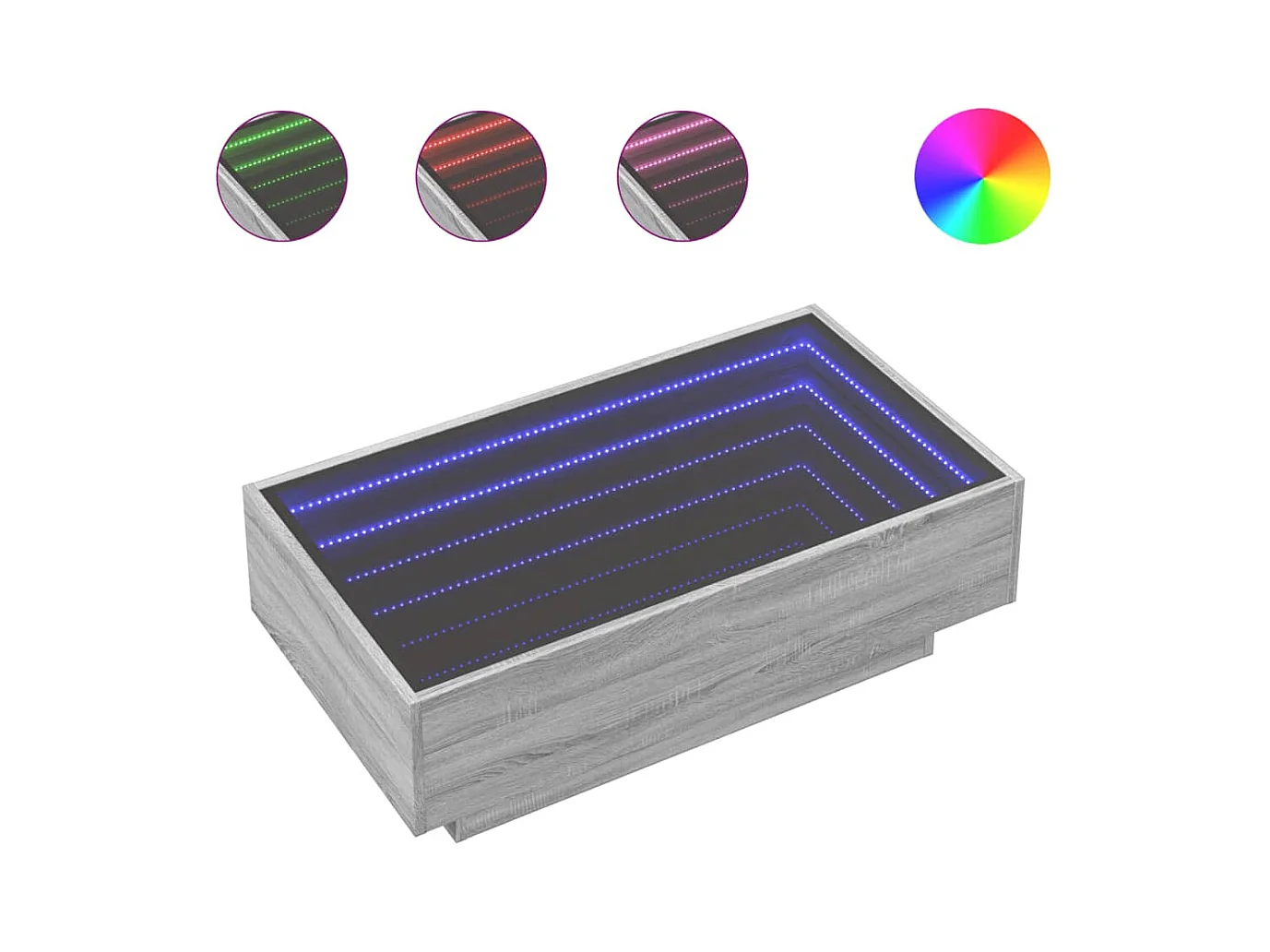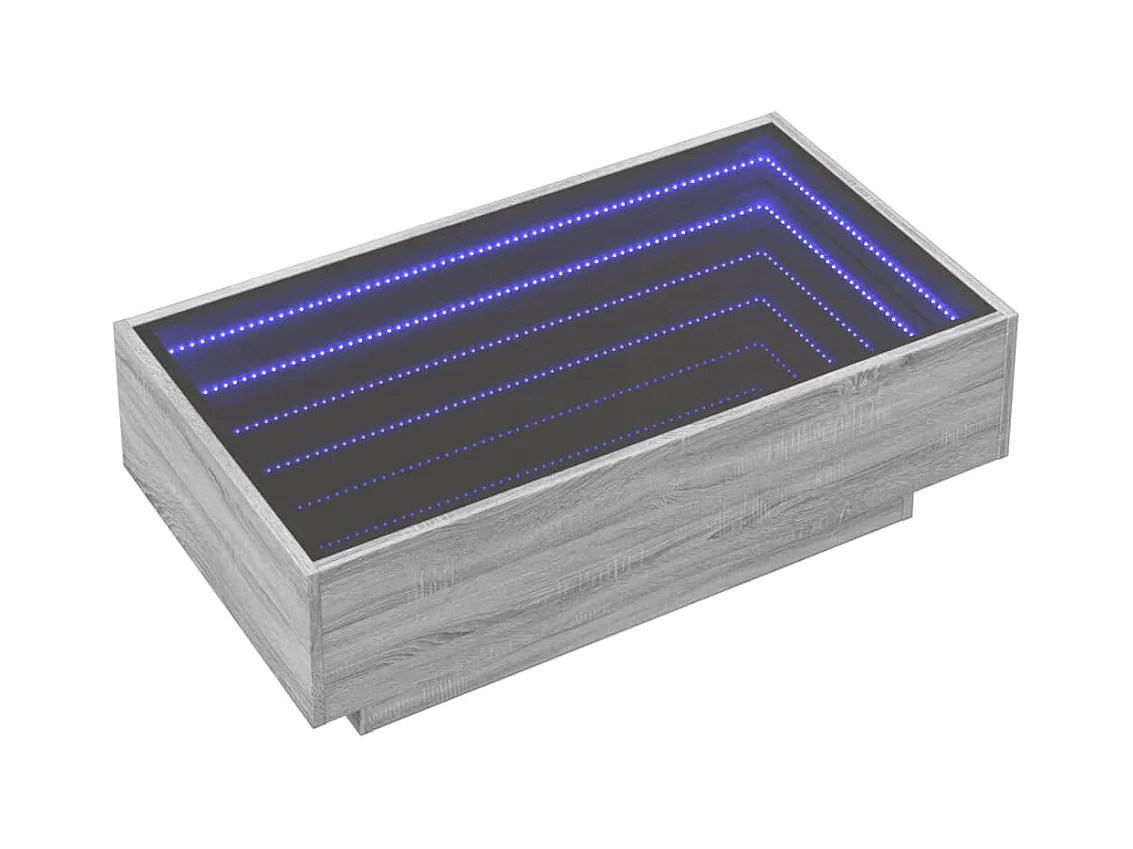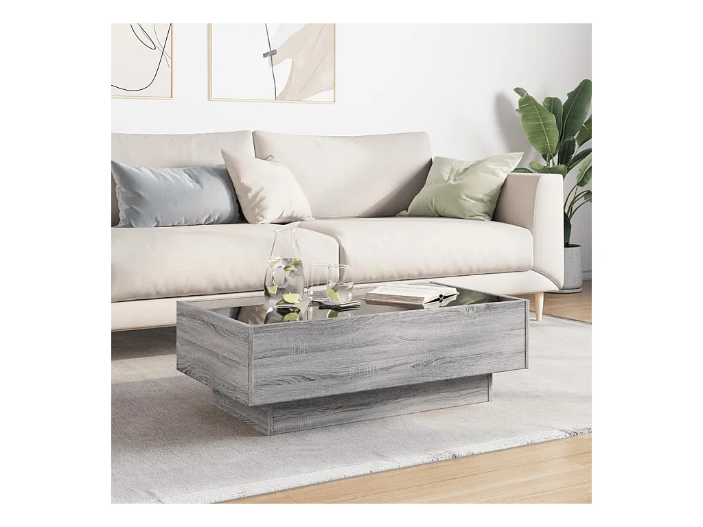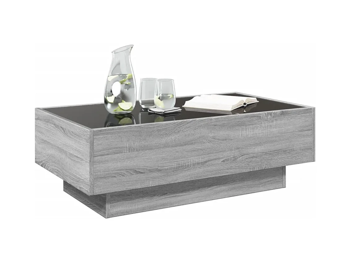 Salontafel met LED 90x50x30 cm bewerkt hout grijs sonoma eiken