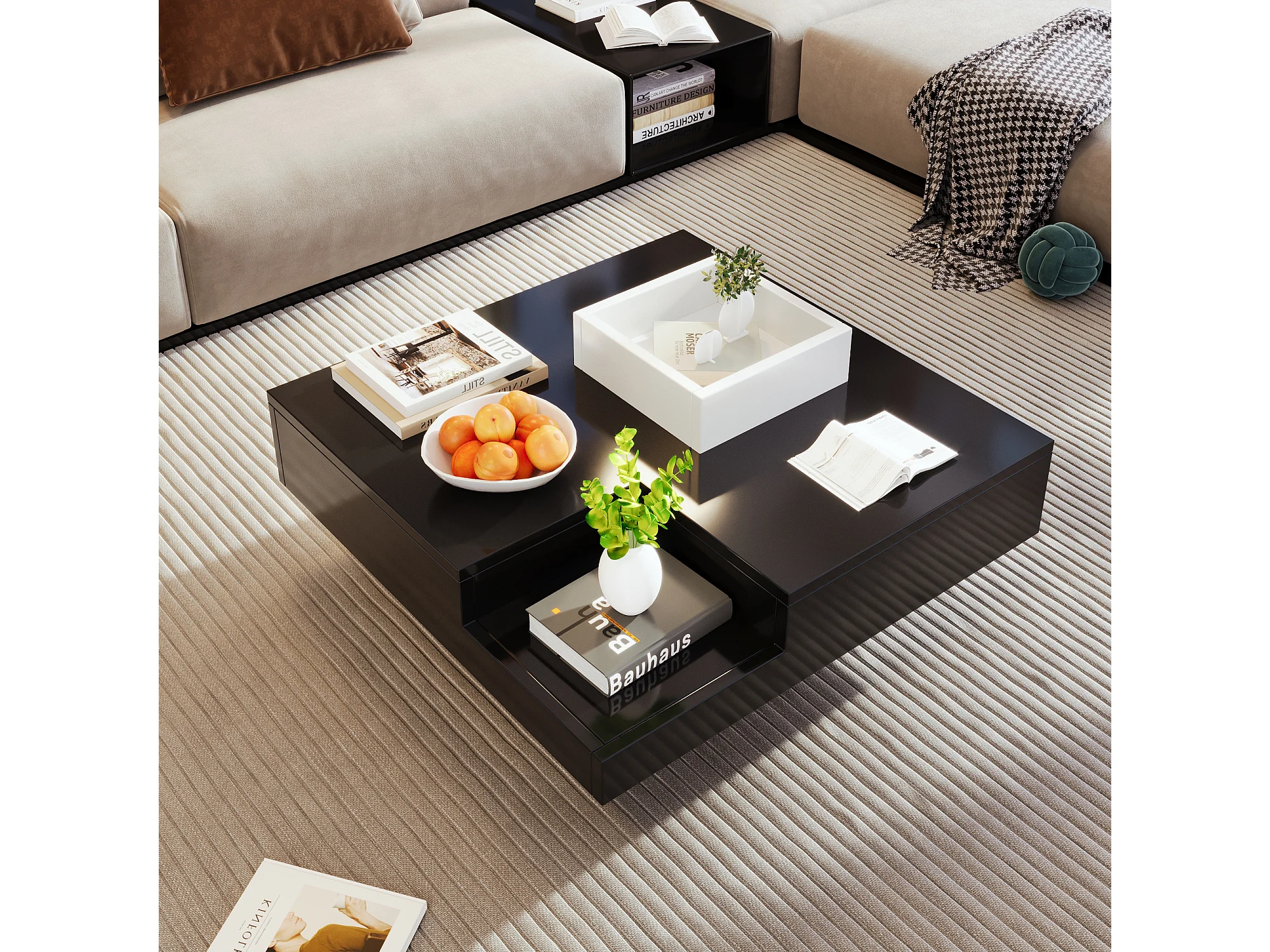 Glanzende salontafel - 70 x 70 x 40 cm - met LED's + 4 lades - Spaanplaat - zwart