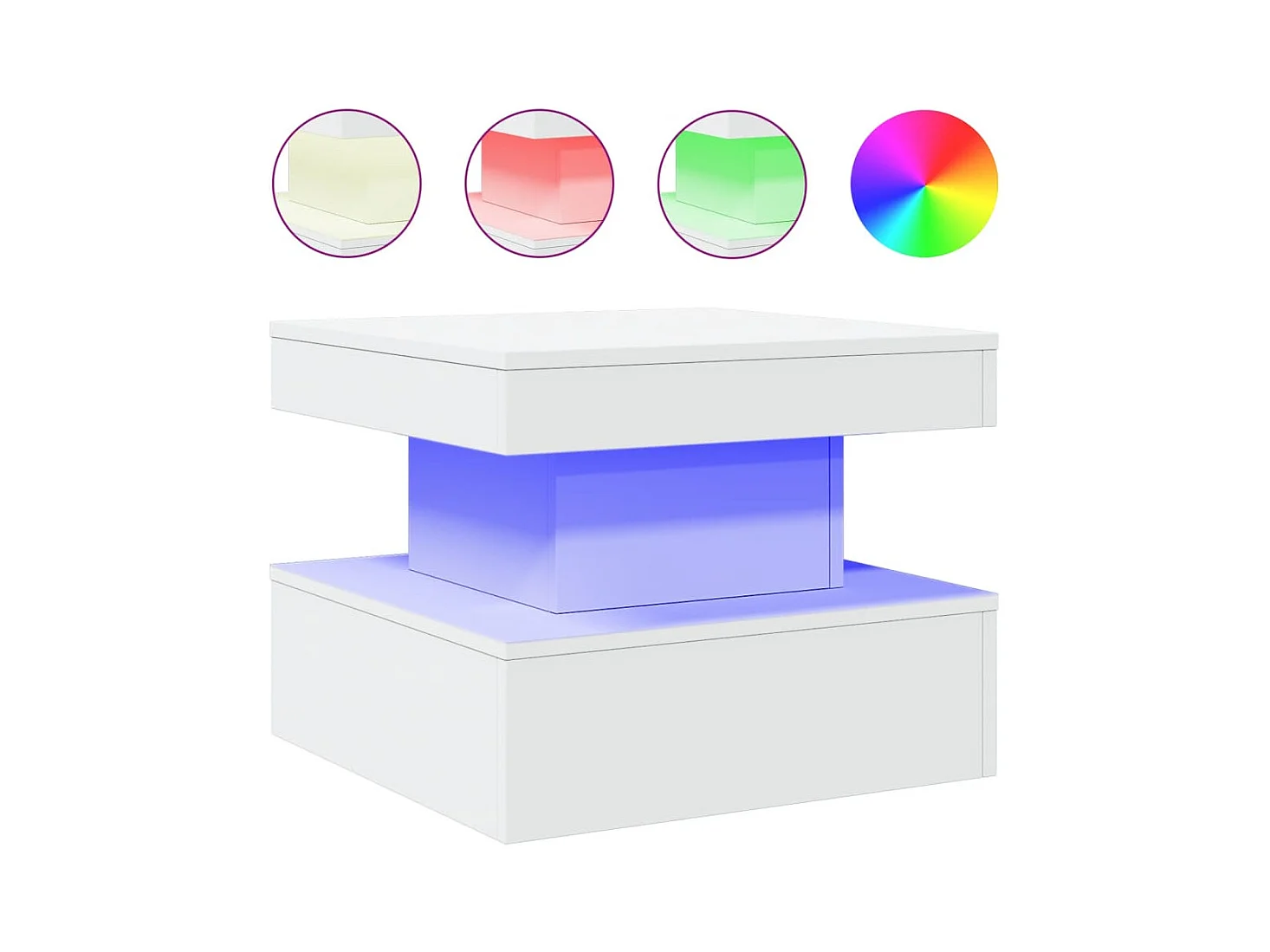 Salontafel met LED 50x50x45 cm bewerkt hout wit