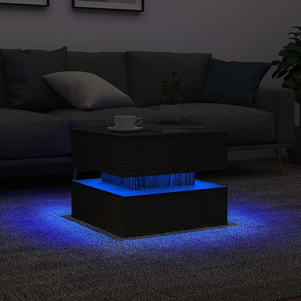 Salontafel met LED-verlichting 50x50x40 cm zwart eikenkleurig