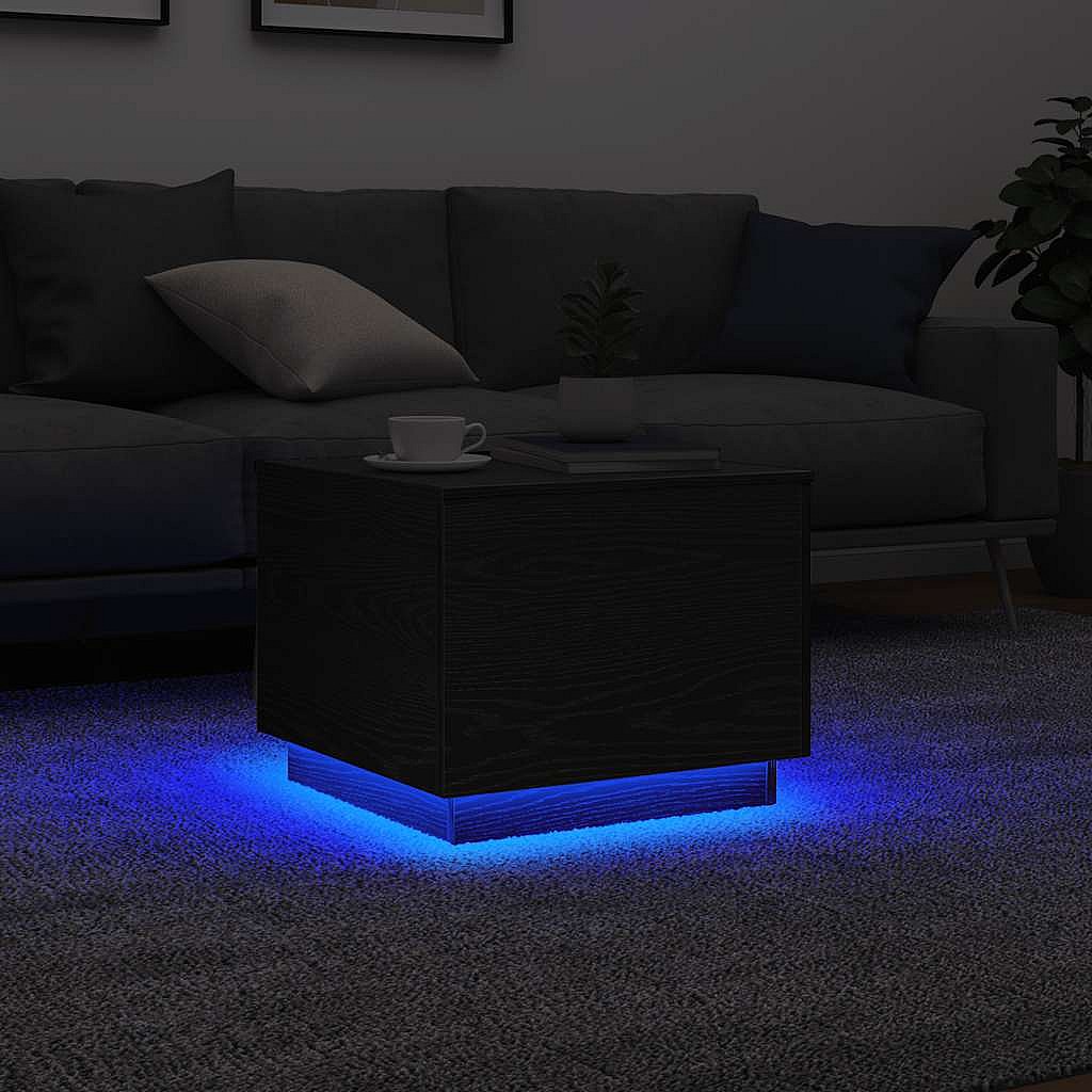 Salontafel met LED-verlichting 50x50x40 cm zwart eikenkleurig