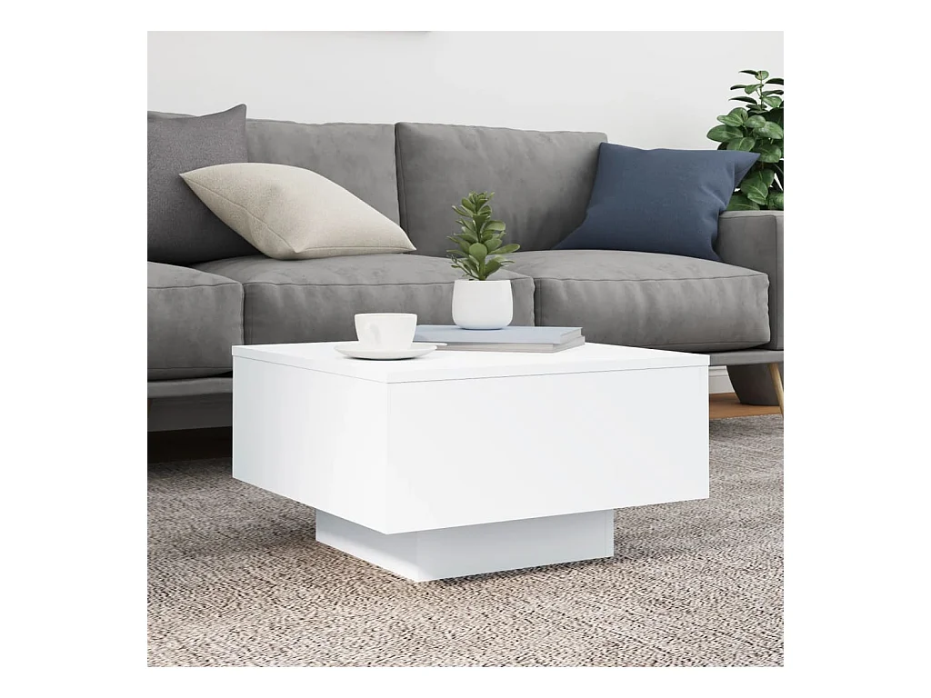 Salontafel met LED 50x50x45 cm bewerkt hout wit