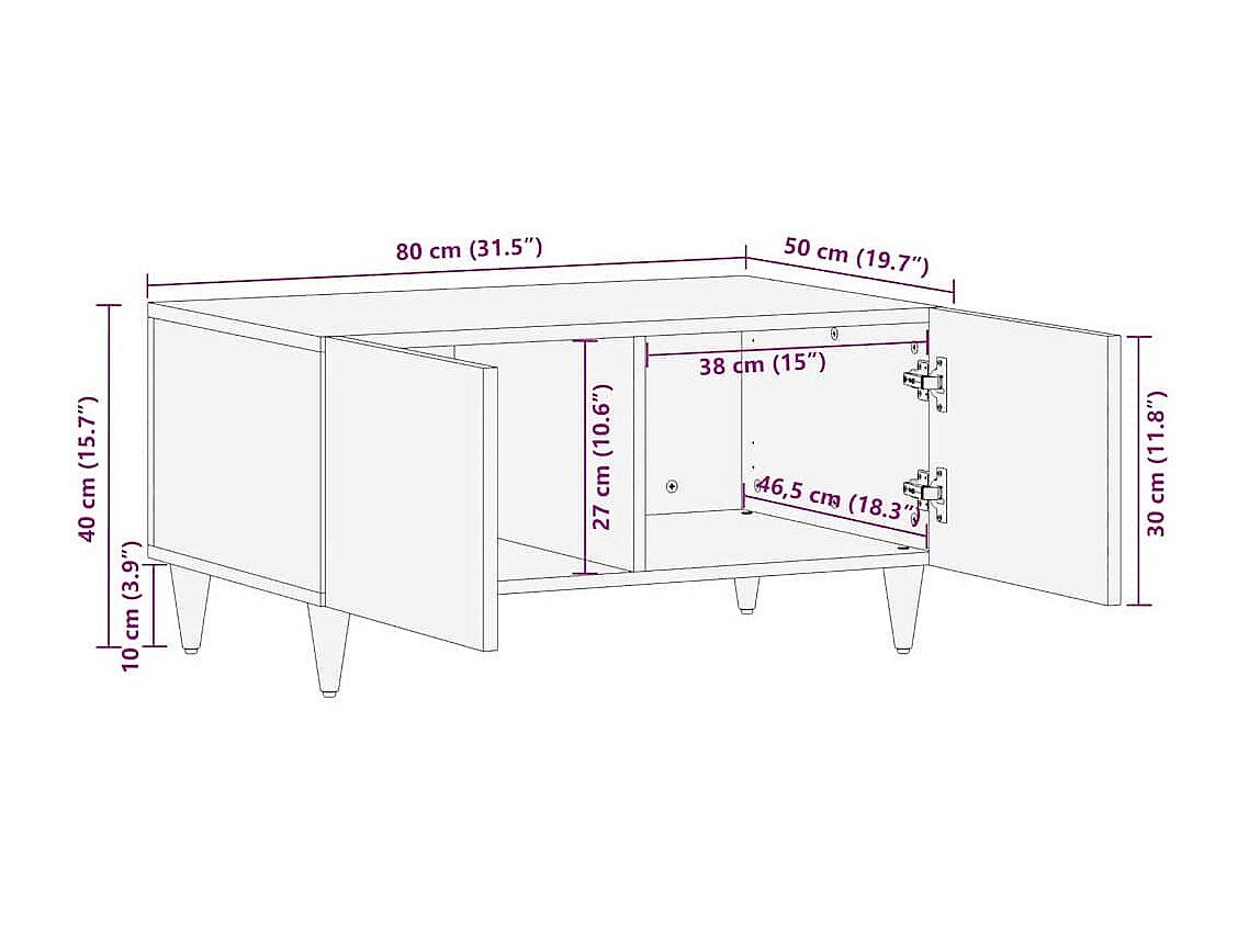 Salontafel 80x50x40 cm massief mangohout bruin en zwart