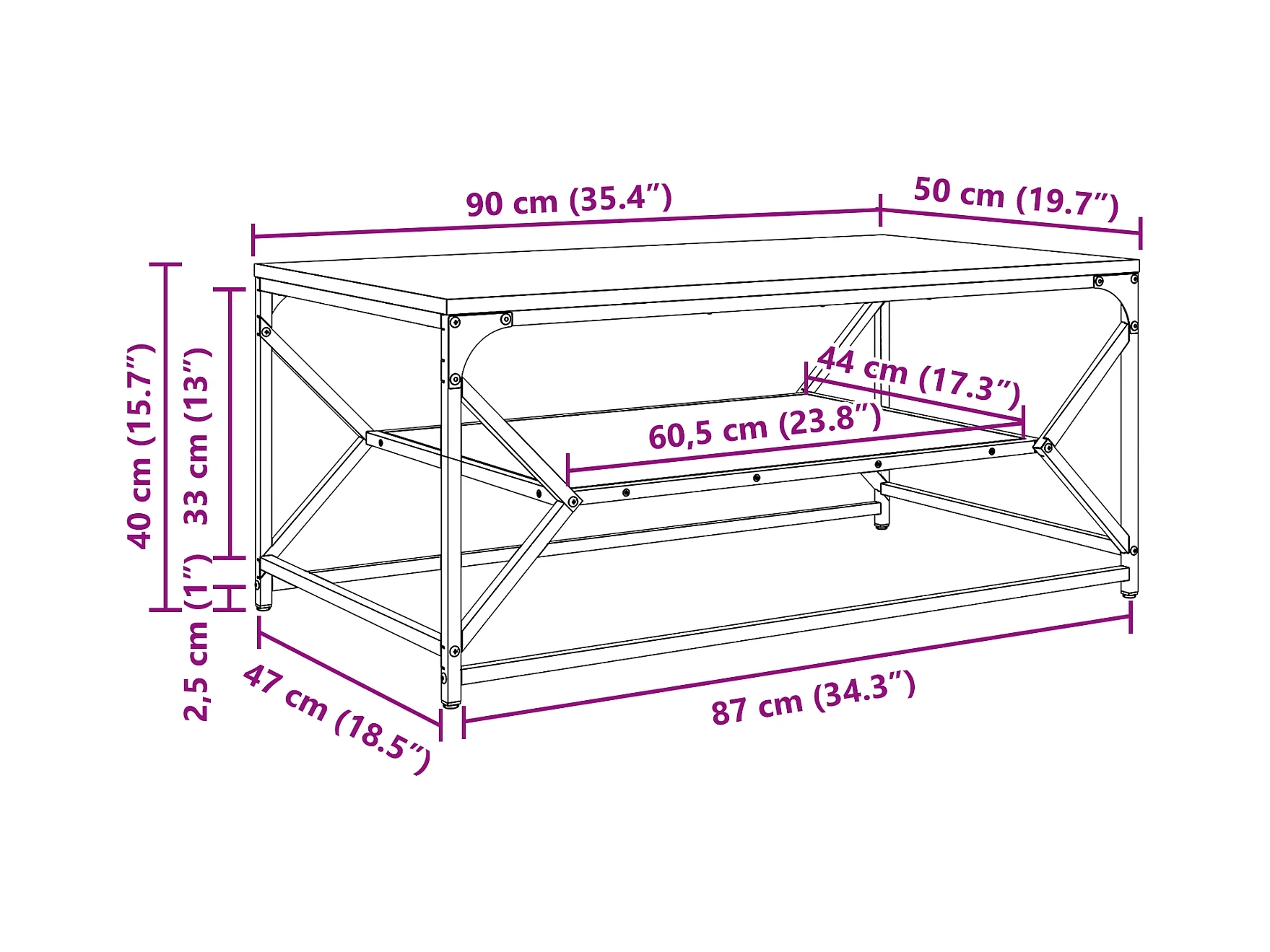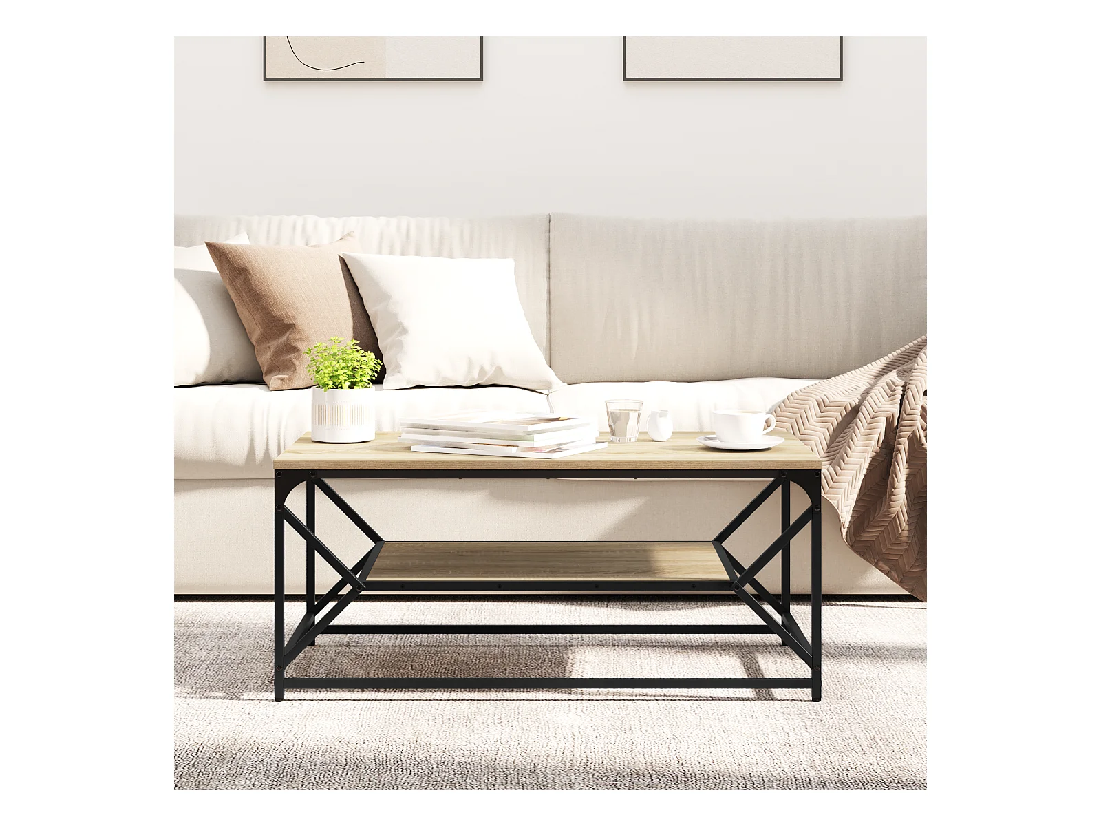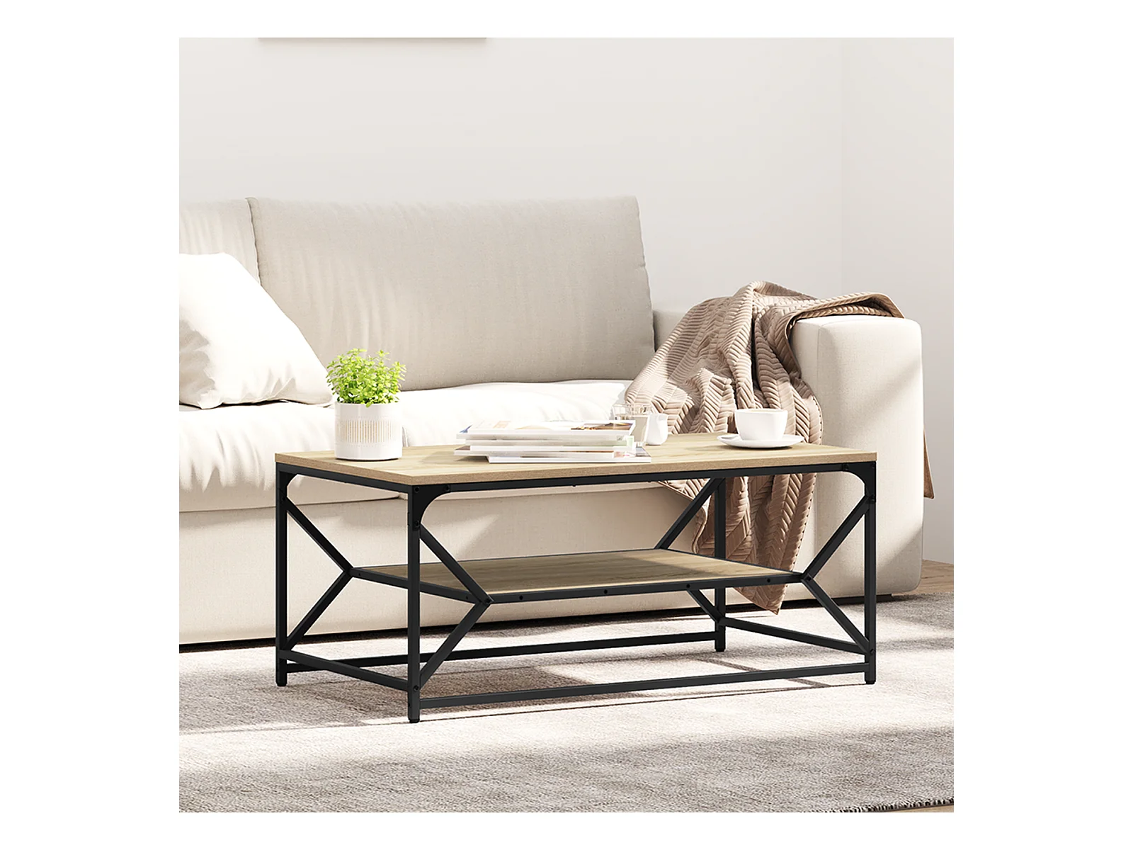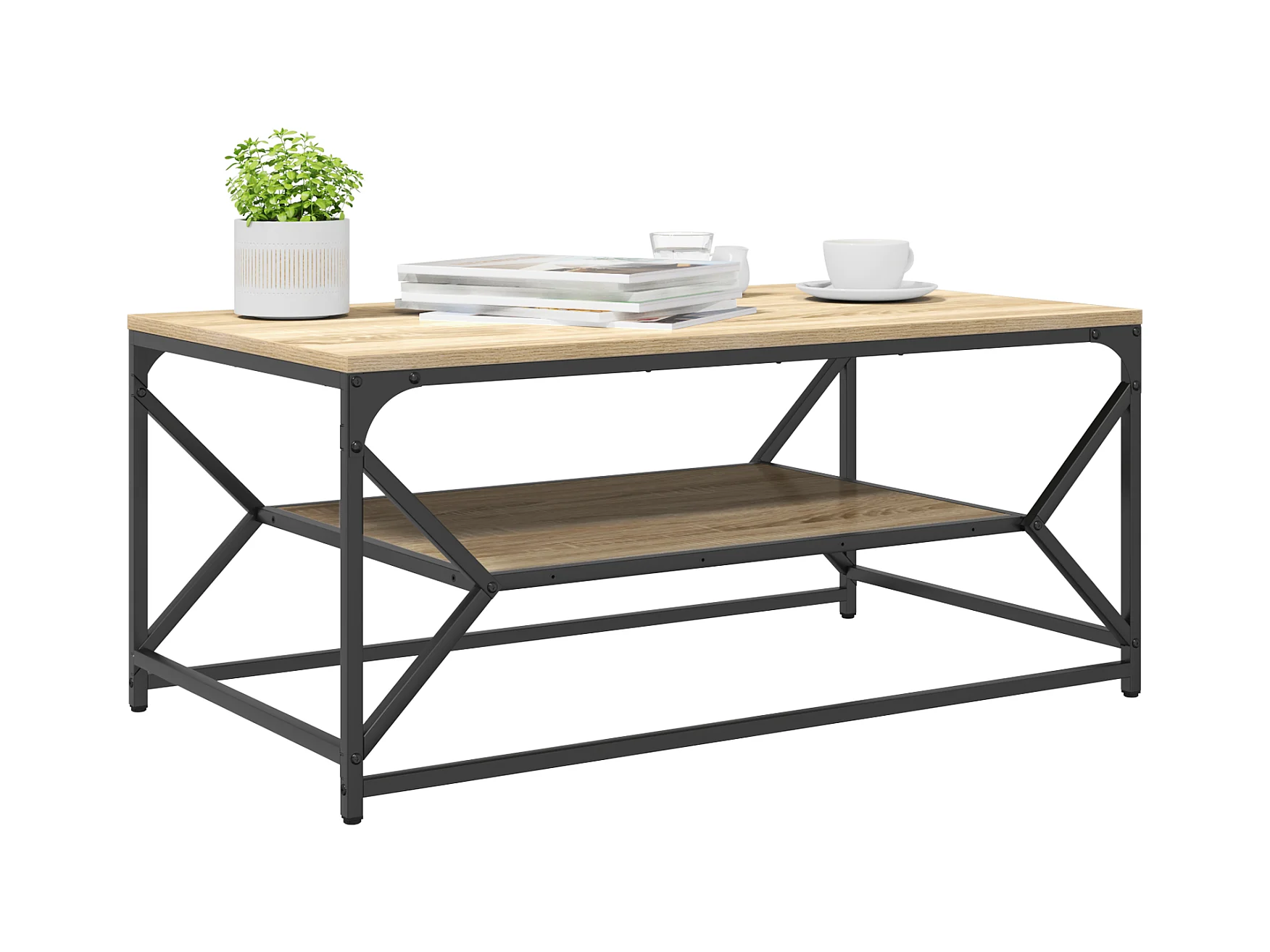 Salontafel met plank Sonoma Eiken 90x50x40 cm Bewerkt hout