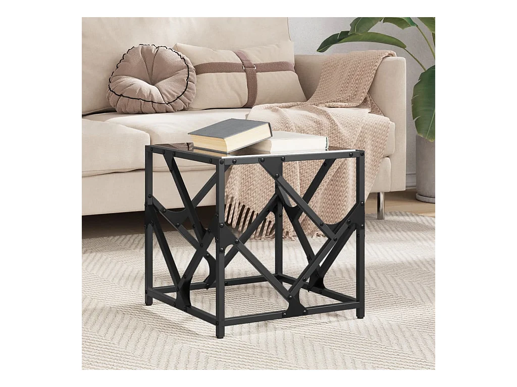 Salontafel met zwart glazen blad 40x40x40 cm staal