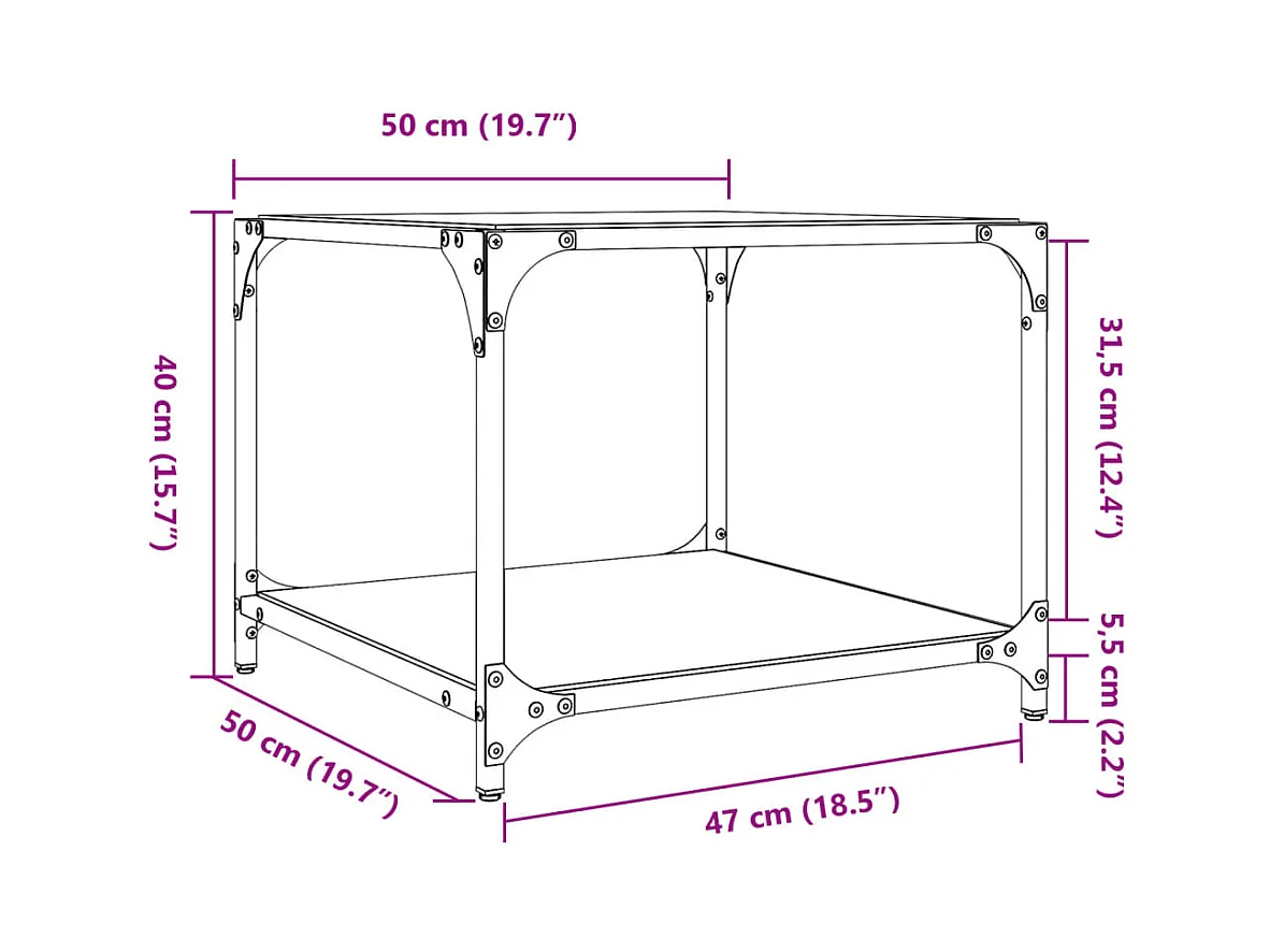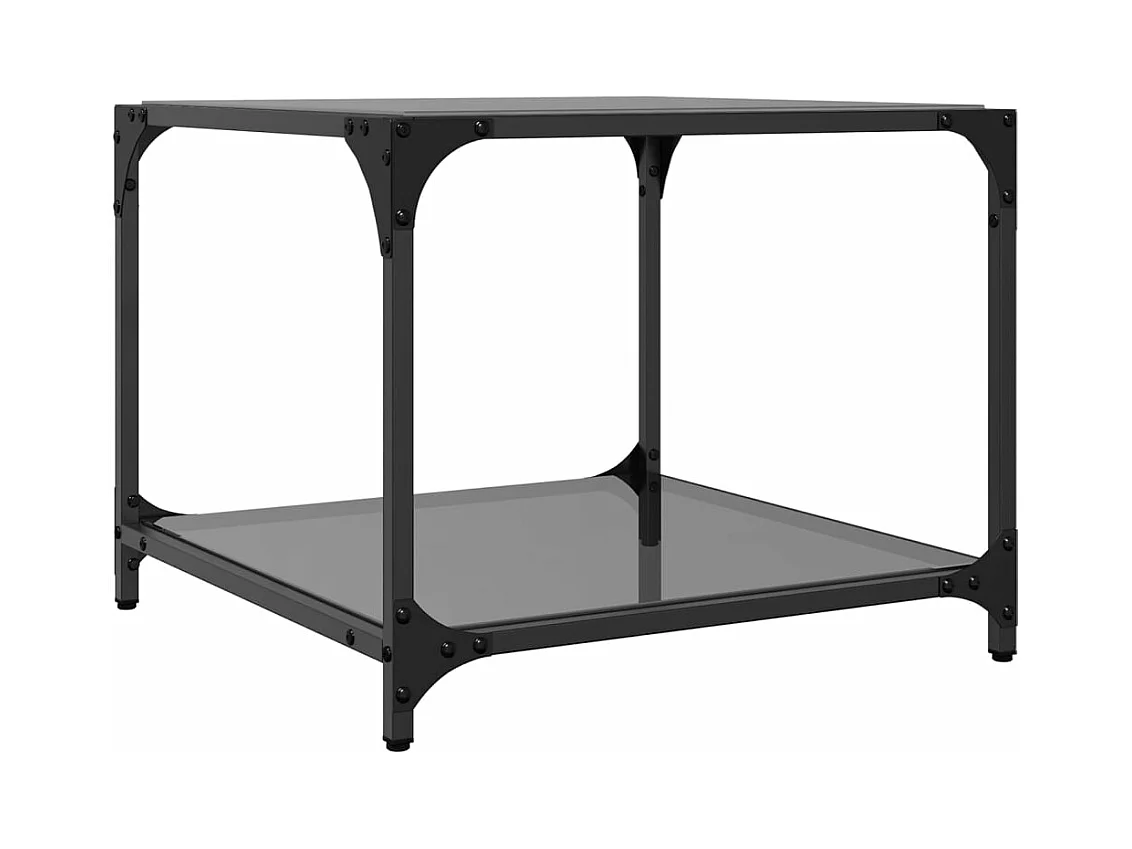 Salontafel met zwart glazen blad 50x50x40 cm staal