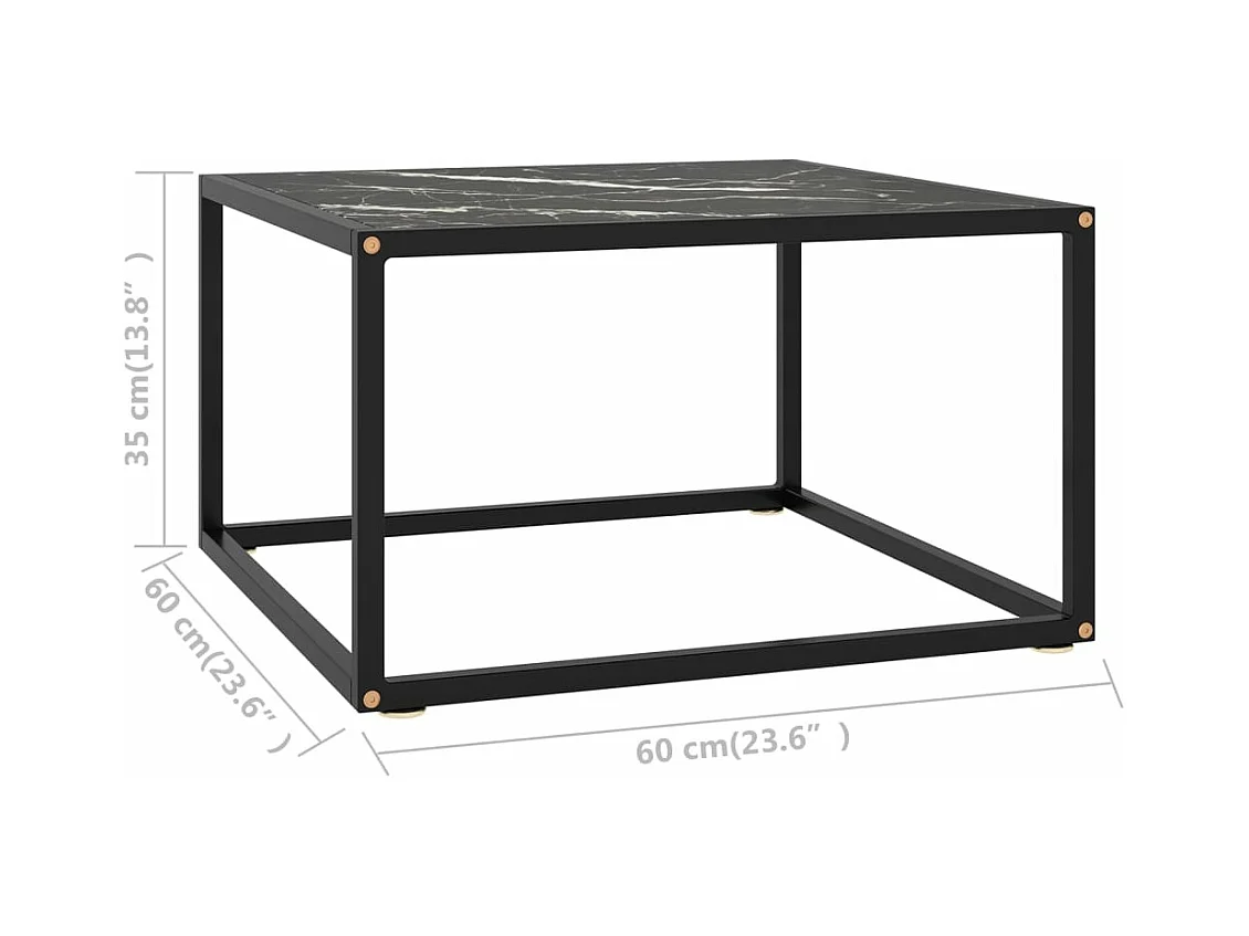 Salontafel met zwart marmerglas 60x60x35 cm zwart