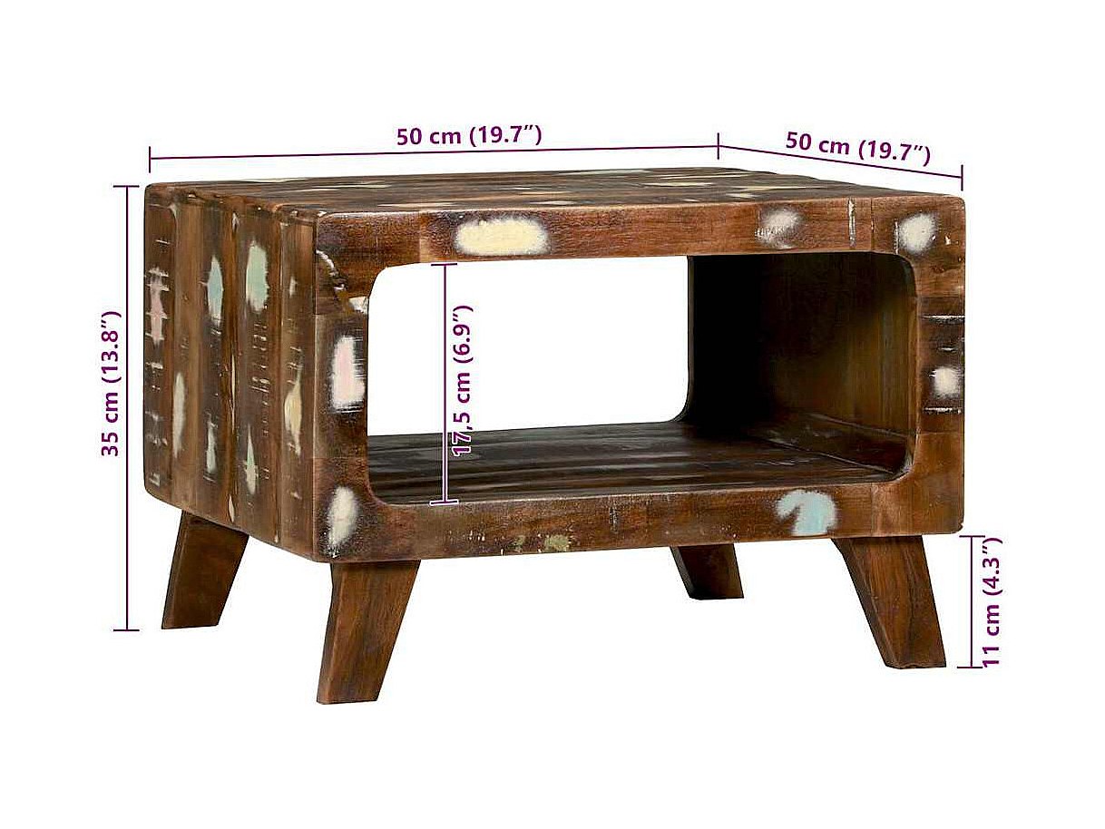 Salontafel 50x50x35 cm massief gerecycled hout meerkleurig