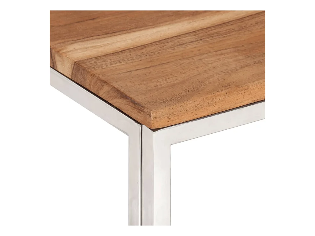 Consoletafel van zilverkleurig roestvrij staal en massief acaciahout