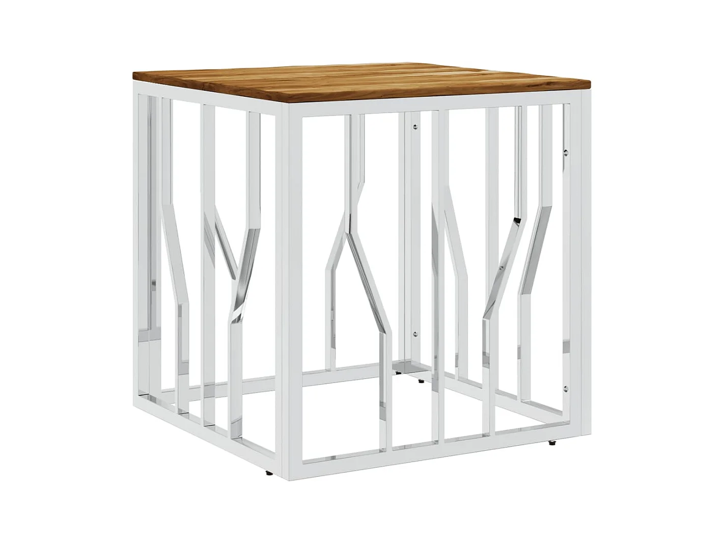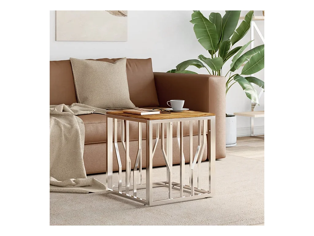 Salontafel roestvrij staal en massief acaciahout zilverkleurig