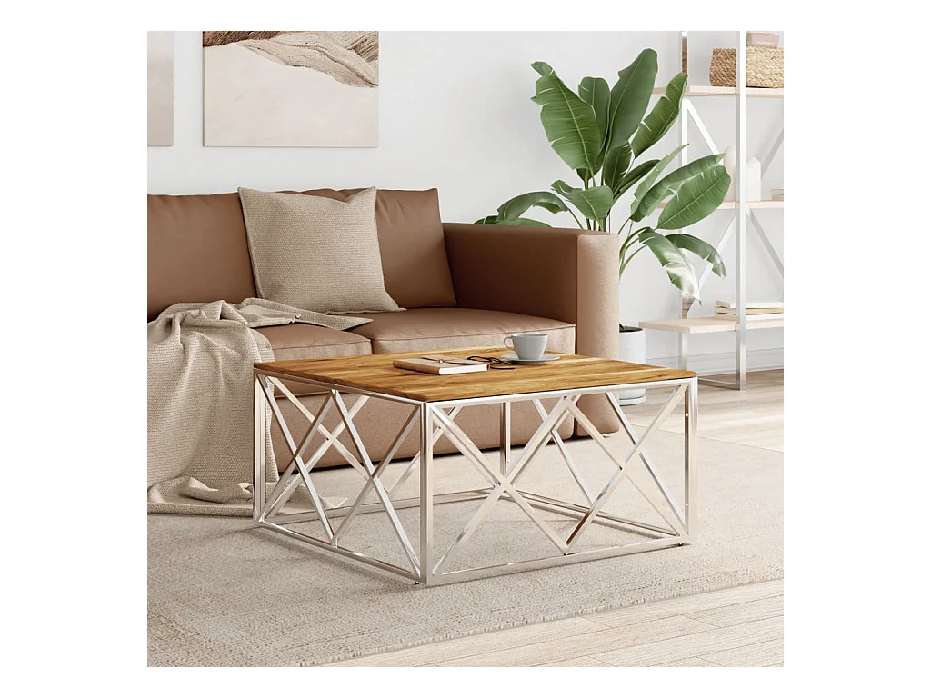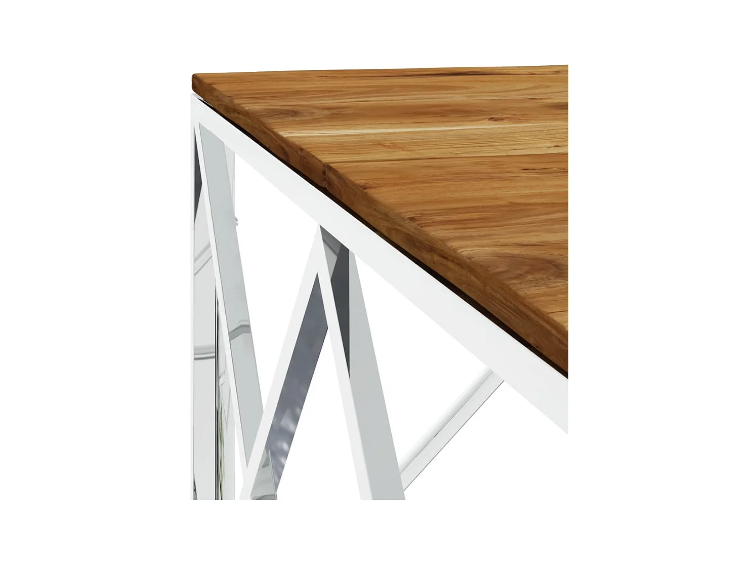 Salontafel roestvrij staal en massief acaciahout zilverkleurig NL47483