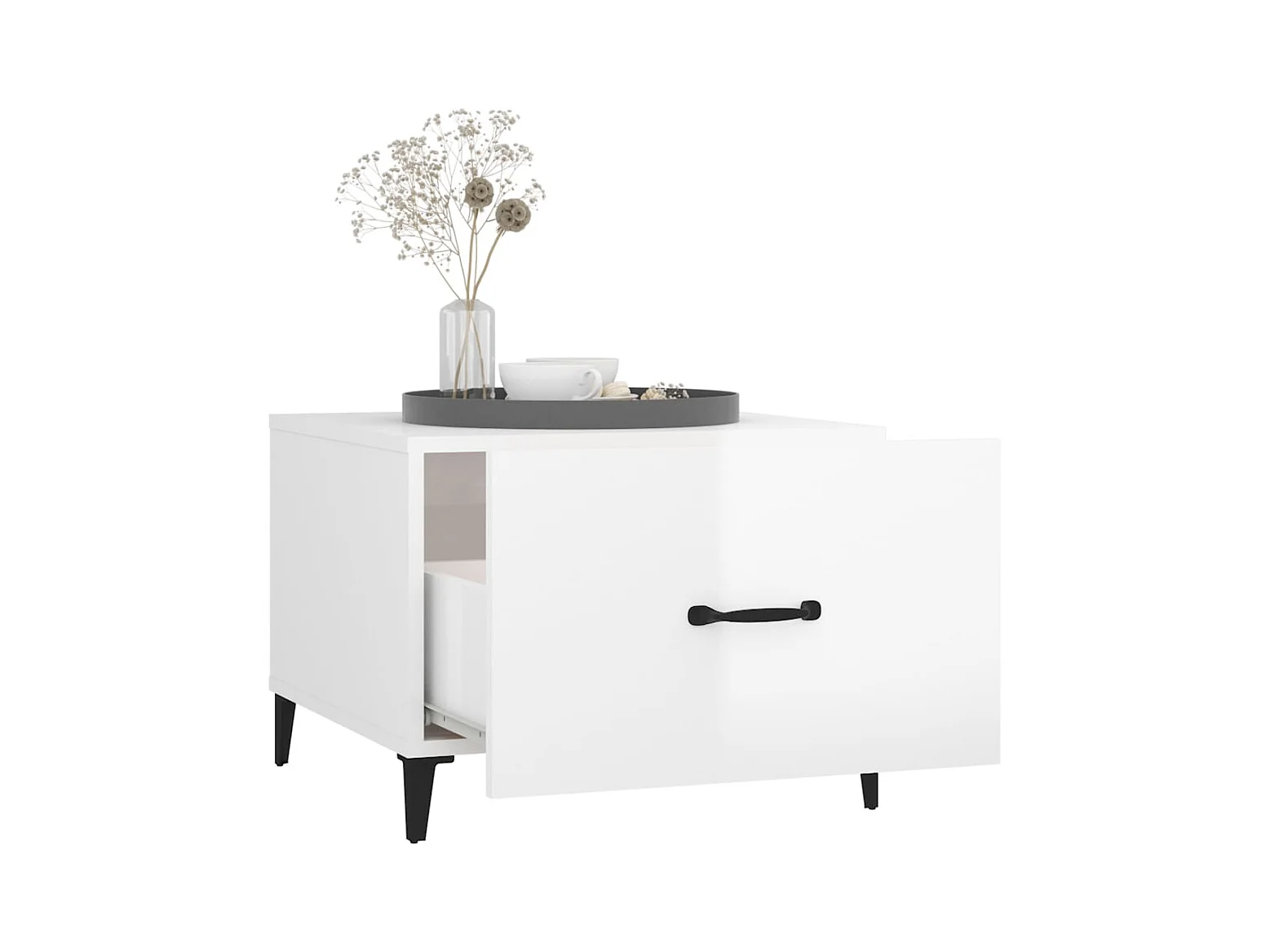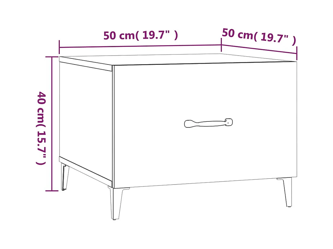 Salontafel | Bijzettafel met metalen poten 50x50x40 cm hoogglans wit