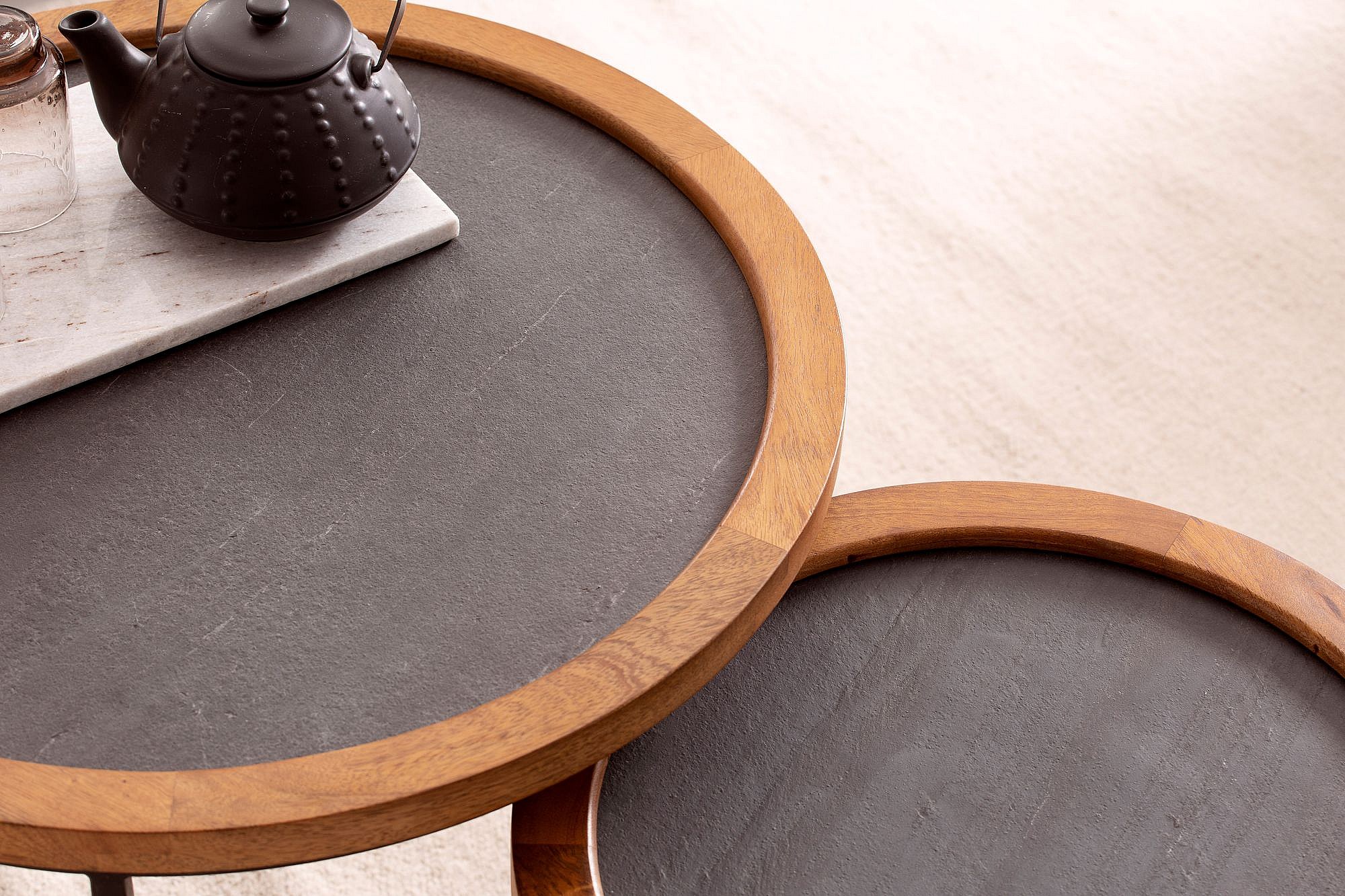 Salontafelset - Massief acaciahout zwart/antraciet - Modern design met nestfunctie