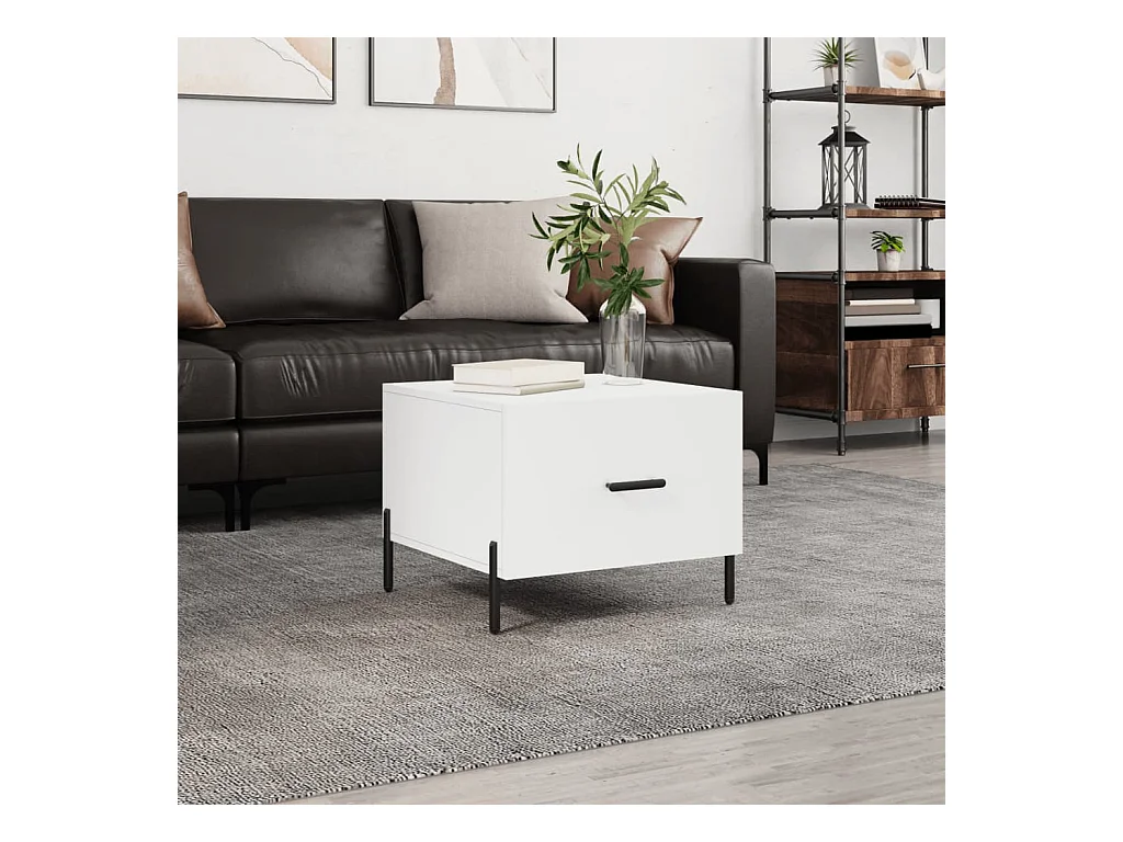 Salontafel | Bijzettafel met metalen poten 50x50x40 cm hoogglans wit