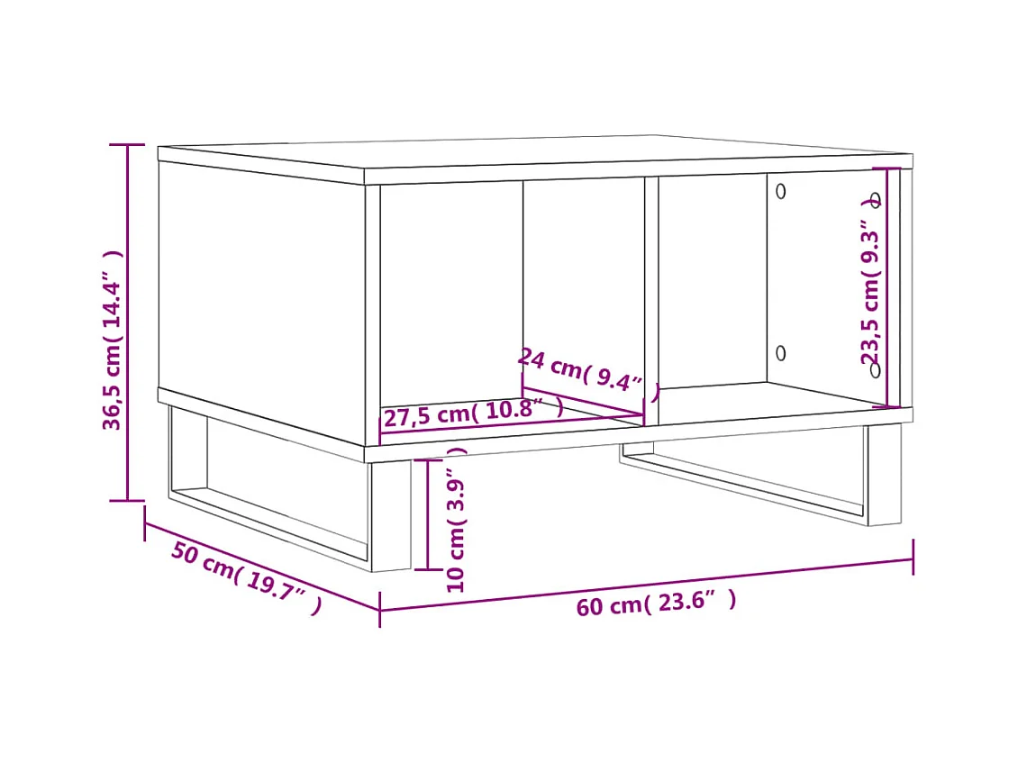 Salontafel | Woonkamertafel | Koffietafel 60x50x40 cm bewerkt hout grijs sonoma eikenkleurig