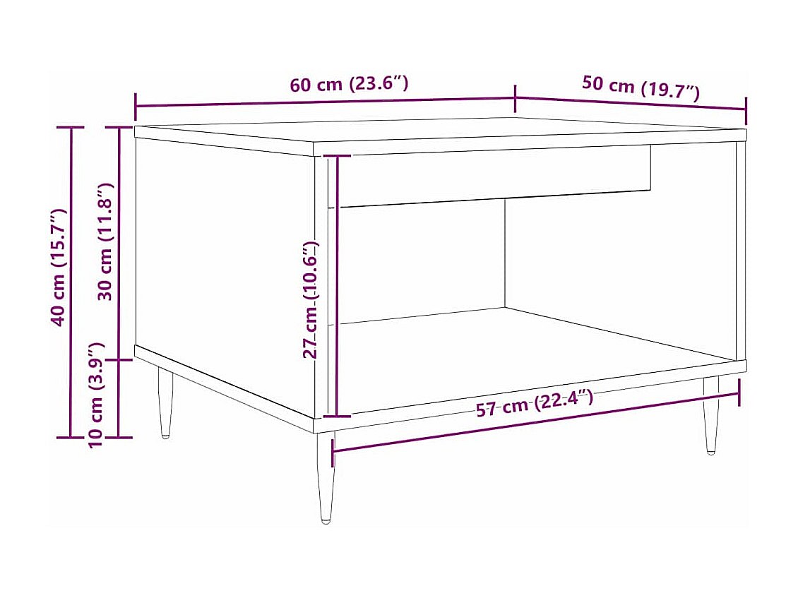 Salontafel Zwart eiken 60 x 50 x 40 cm Bewerkt hout