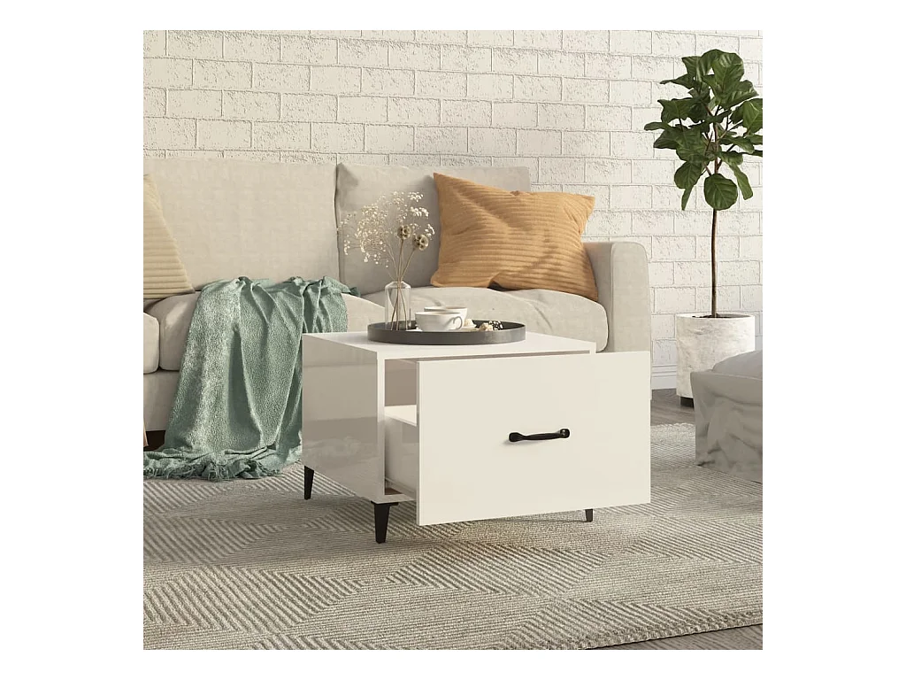 Salontafels 2 stuks wit hoogglans 50x50x40cm bewerkt hout