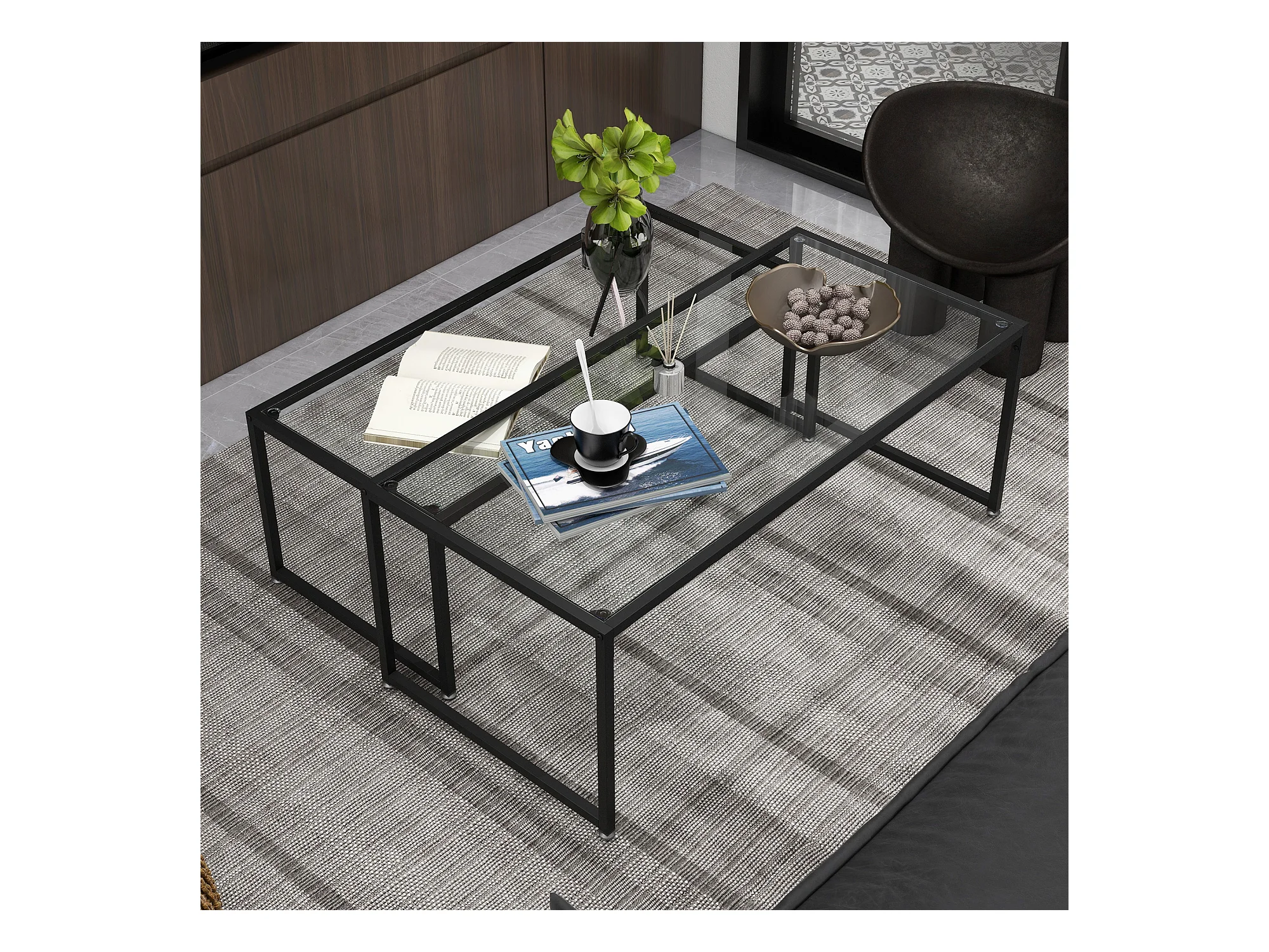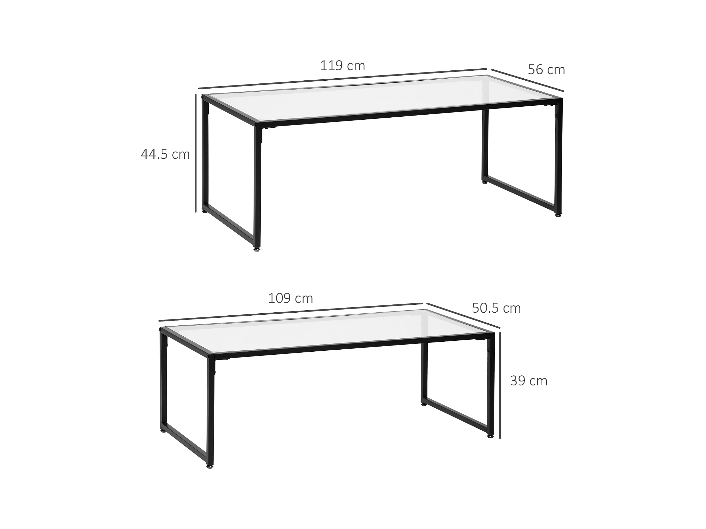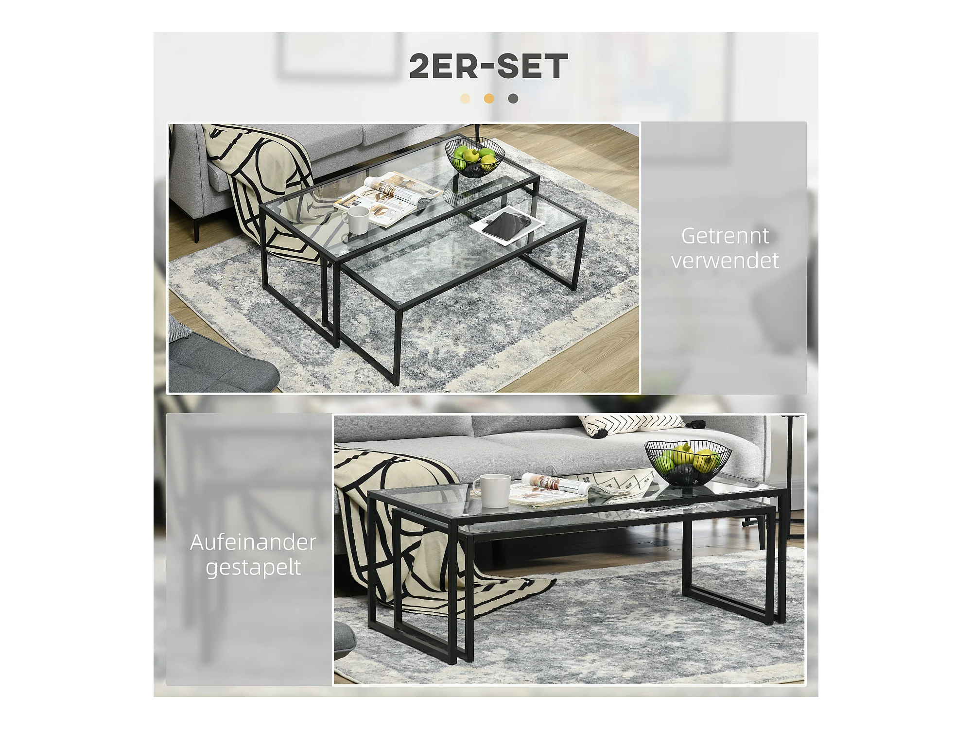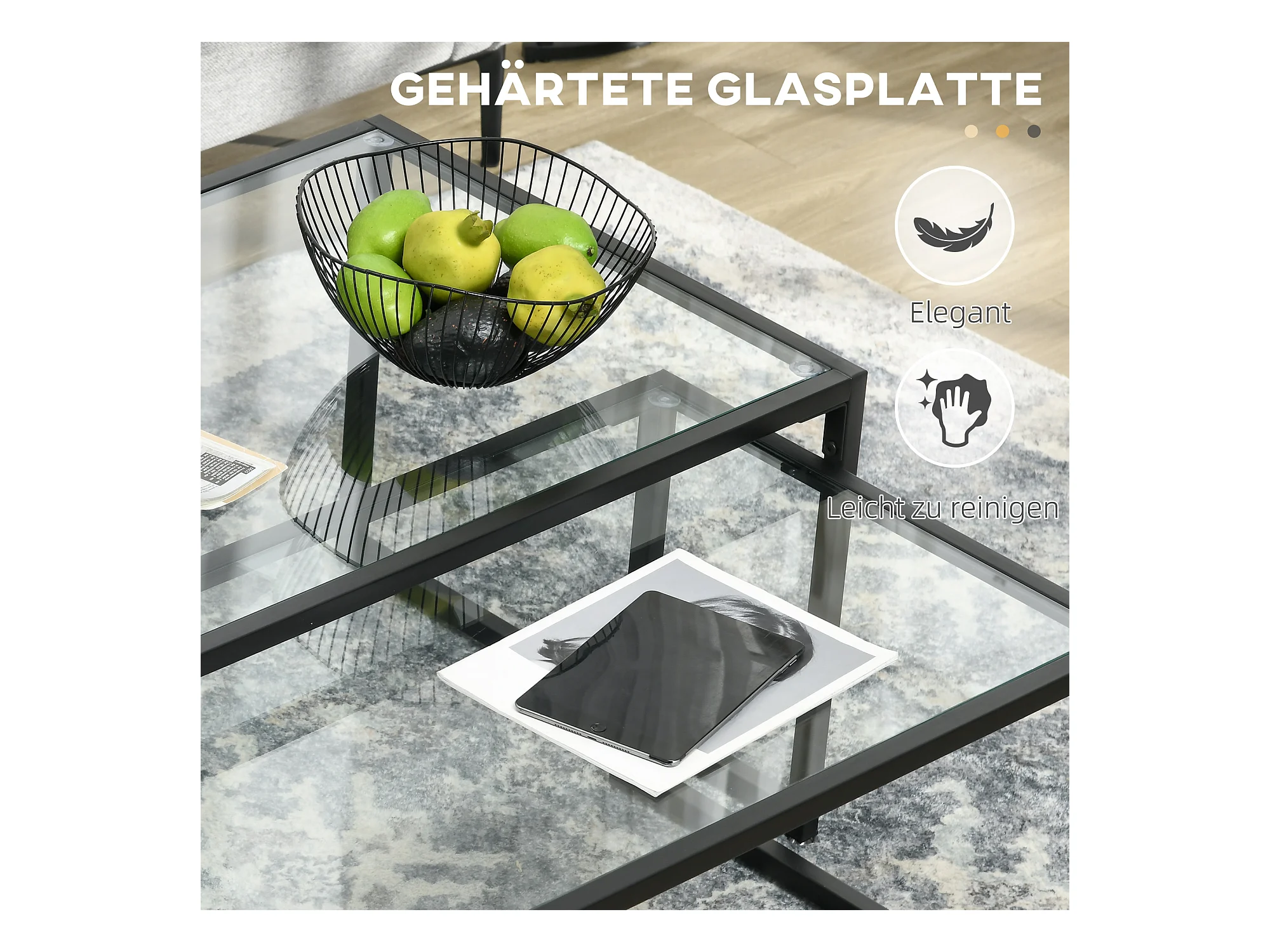Salontafelset, 2-delig, gehard glas, metaal, zwart (119x56x44,5 cm)