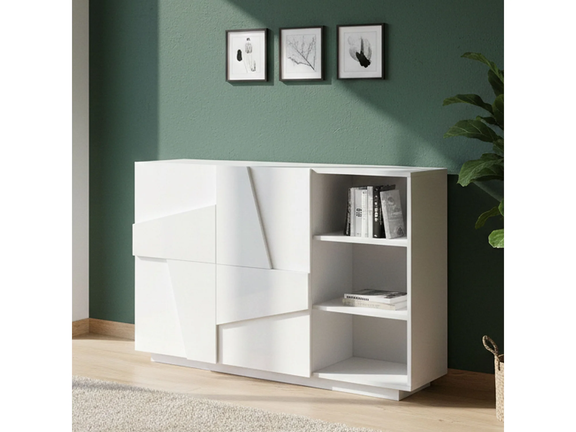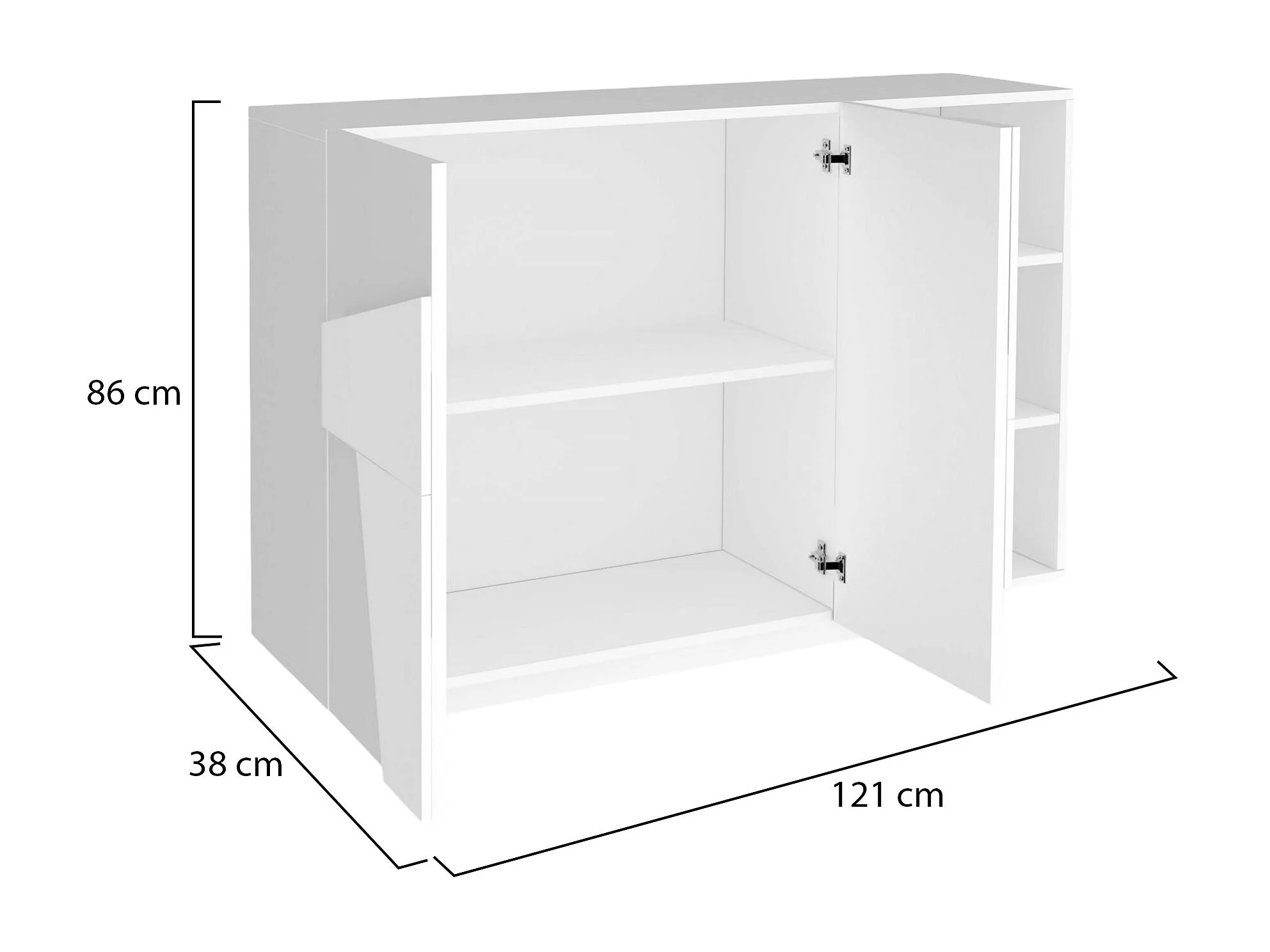 Dmora Credenza Salvo 38x121x86h cm Glanzend Wit 3 Planken 5 Compartimenten, Buffelkast 2 Deuren Made in Italy