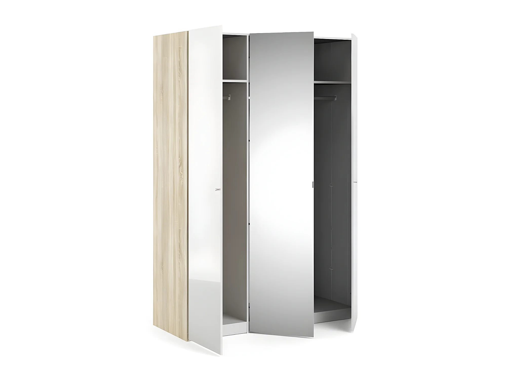Saskia kledingkast 1 spiegeldeur + 2 deuren wit hoogglans en eiken decor.