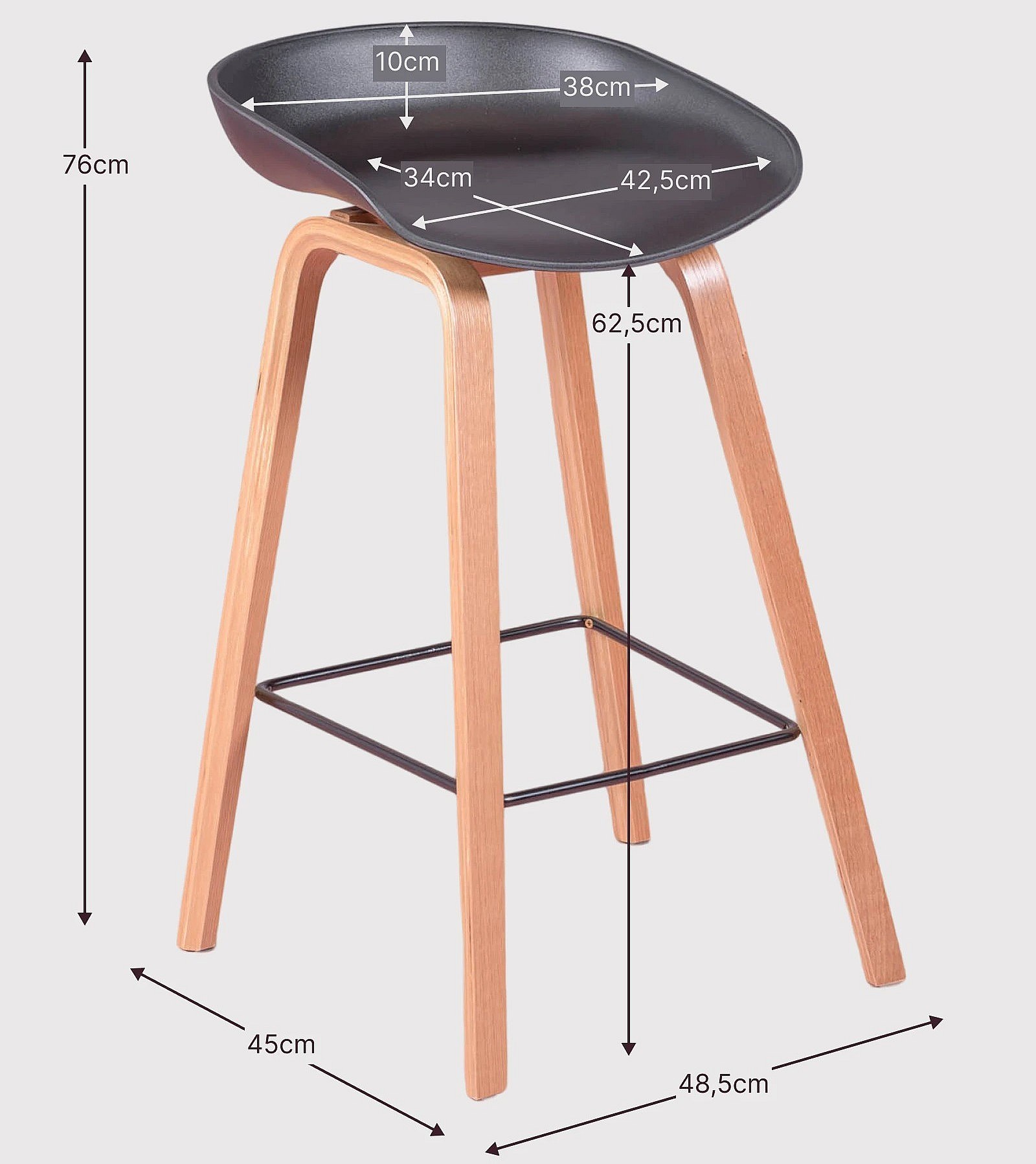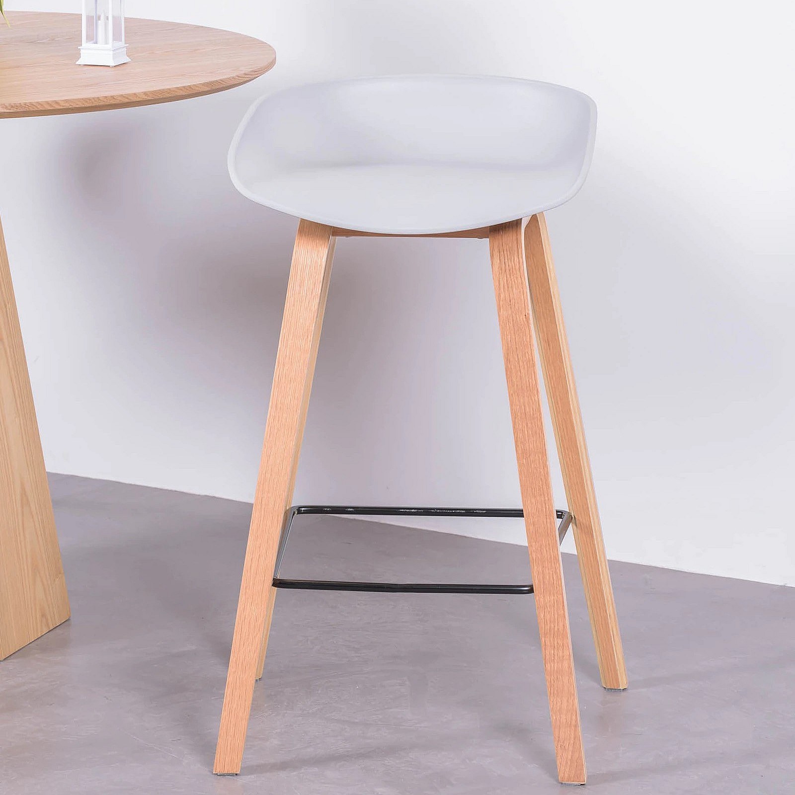 Scandinavische kruk met beukenhouten poten (63cm) - Daxer - Lichtgrijs