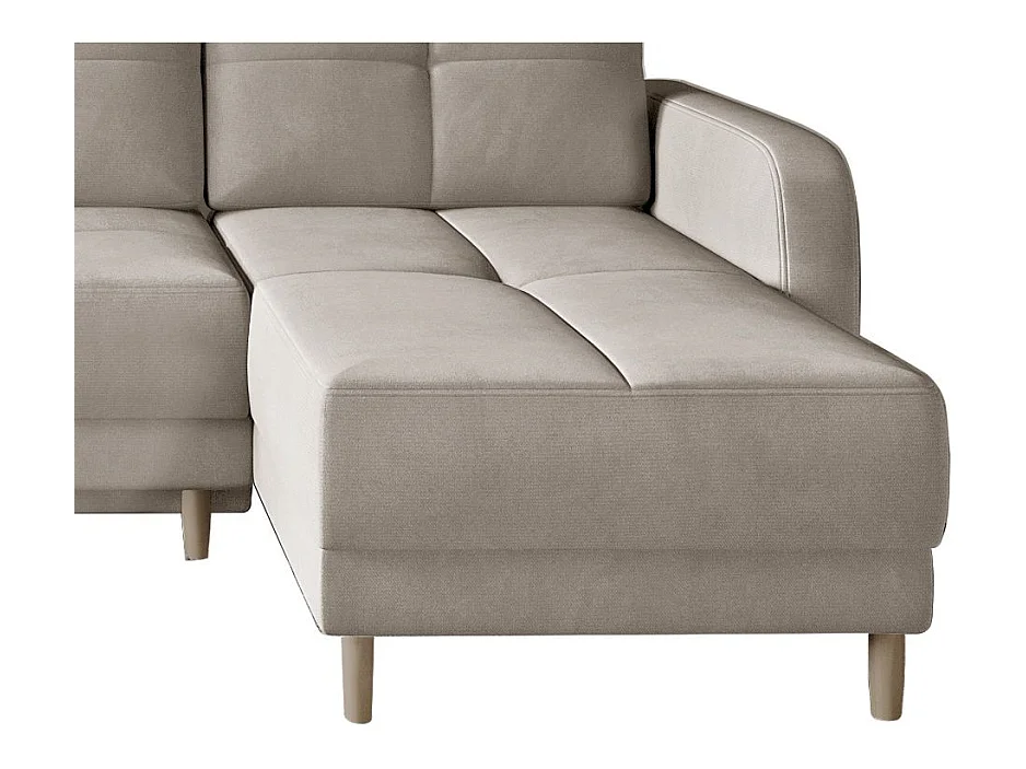 Scandinavische omkeerbare hoekbank in beige fluweel en lichte houten poten Kindo 240 cm