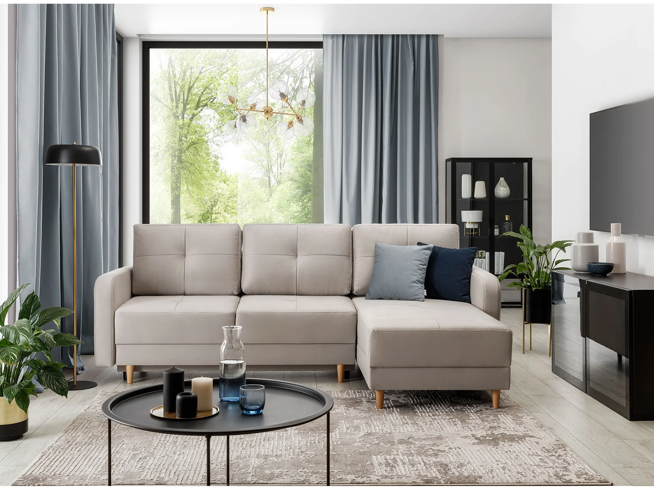 KINDO omkeerbare en omkeerbare stoffen hoekbank - Lichte houten poten-Kleur Muis grijs