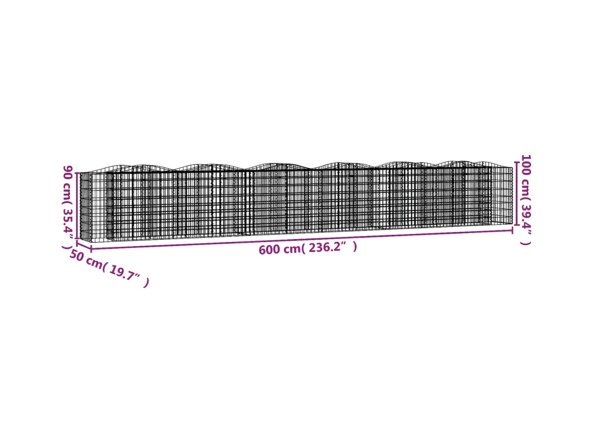 Schanskorf gewelfd verhoogd 600x50x100 cm gegalvaniseerd ijzer