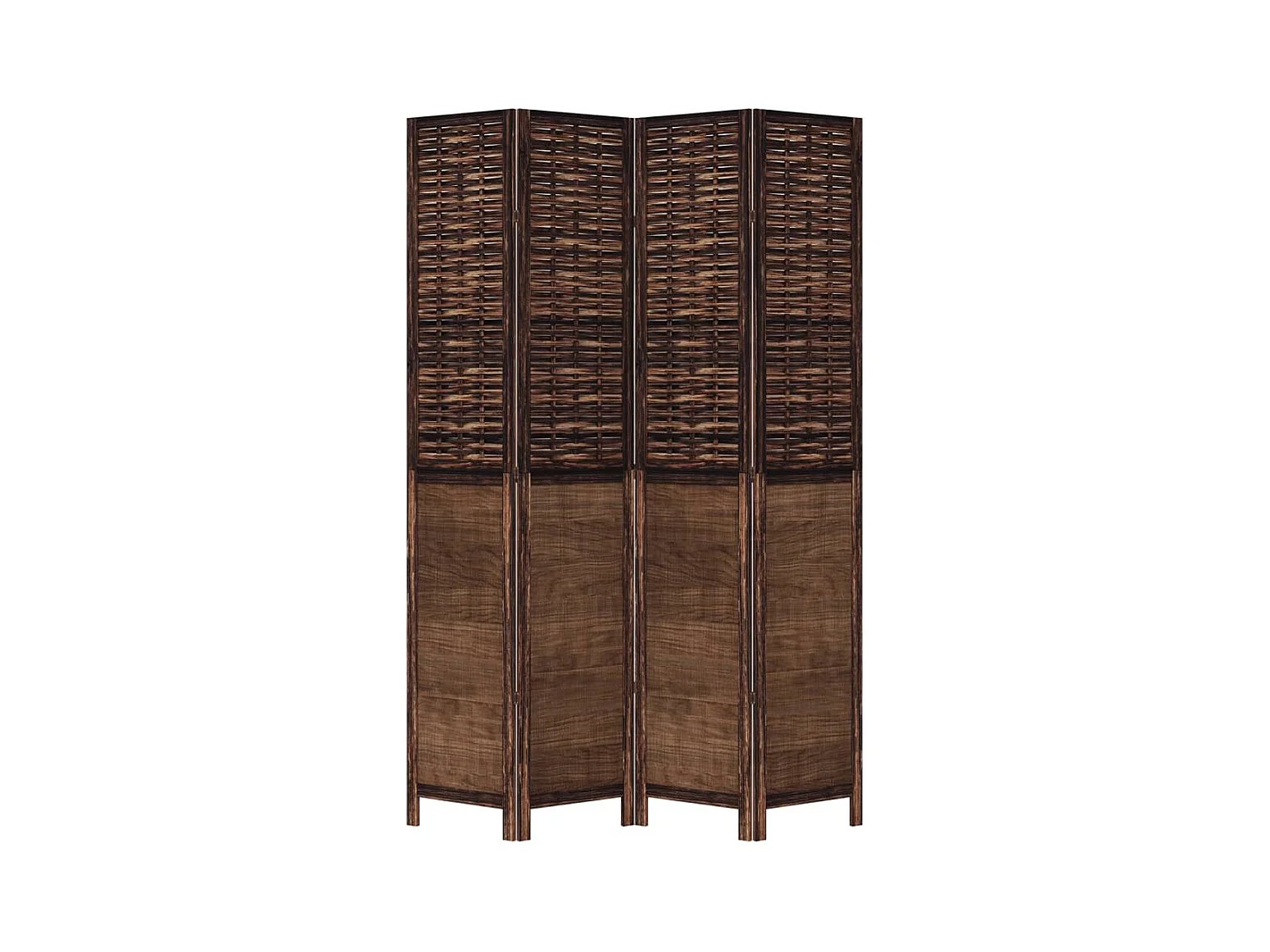 Scheidingswand 4 panelen donkerbruin massief paulownia