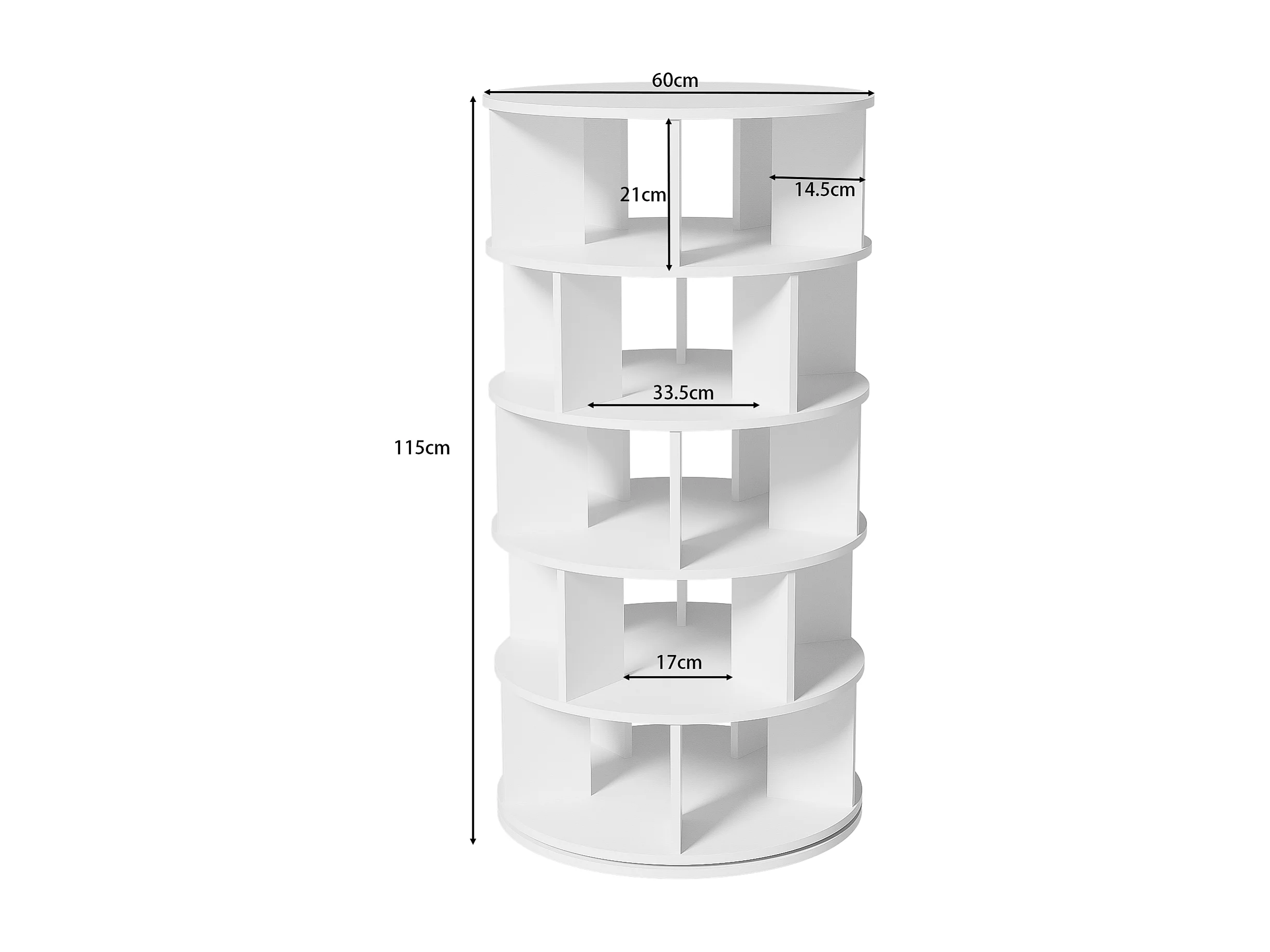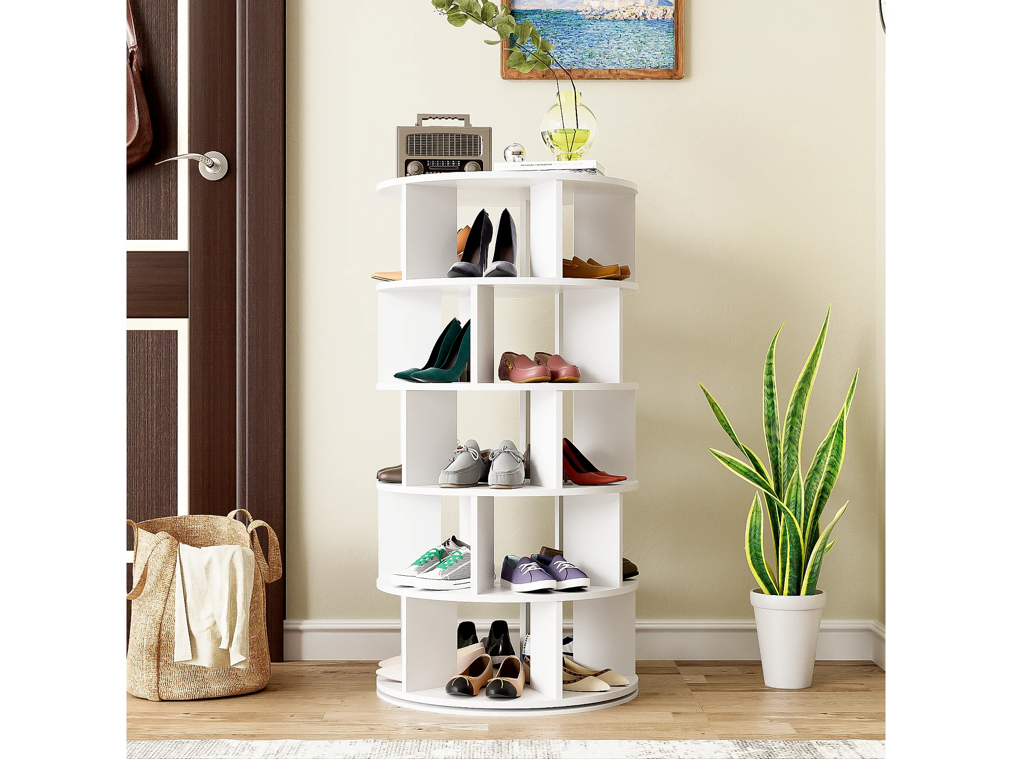 Schoenenkast 60x60x115 cm, draaibaar ontwerp, 5 niveaus, opbergruimte met compartimenten, spaanplaat, wit