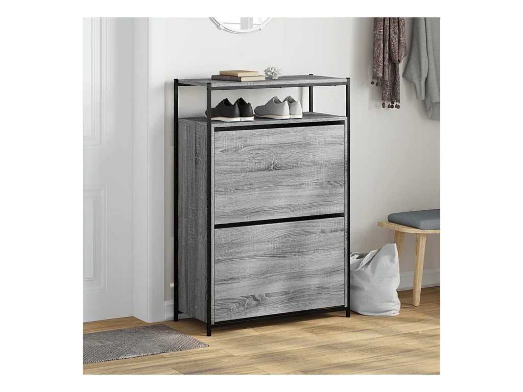 Schoenenkast 75x34x112 cm bewerkt hout grijs sonoma eikenkleur BE722395