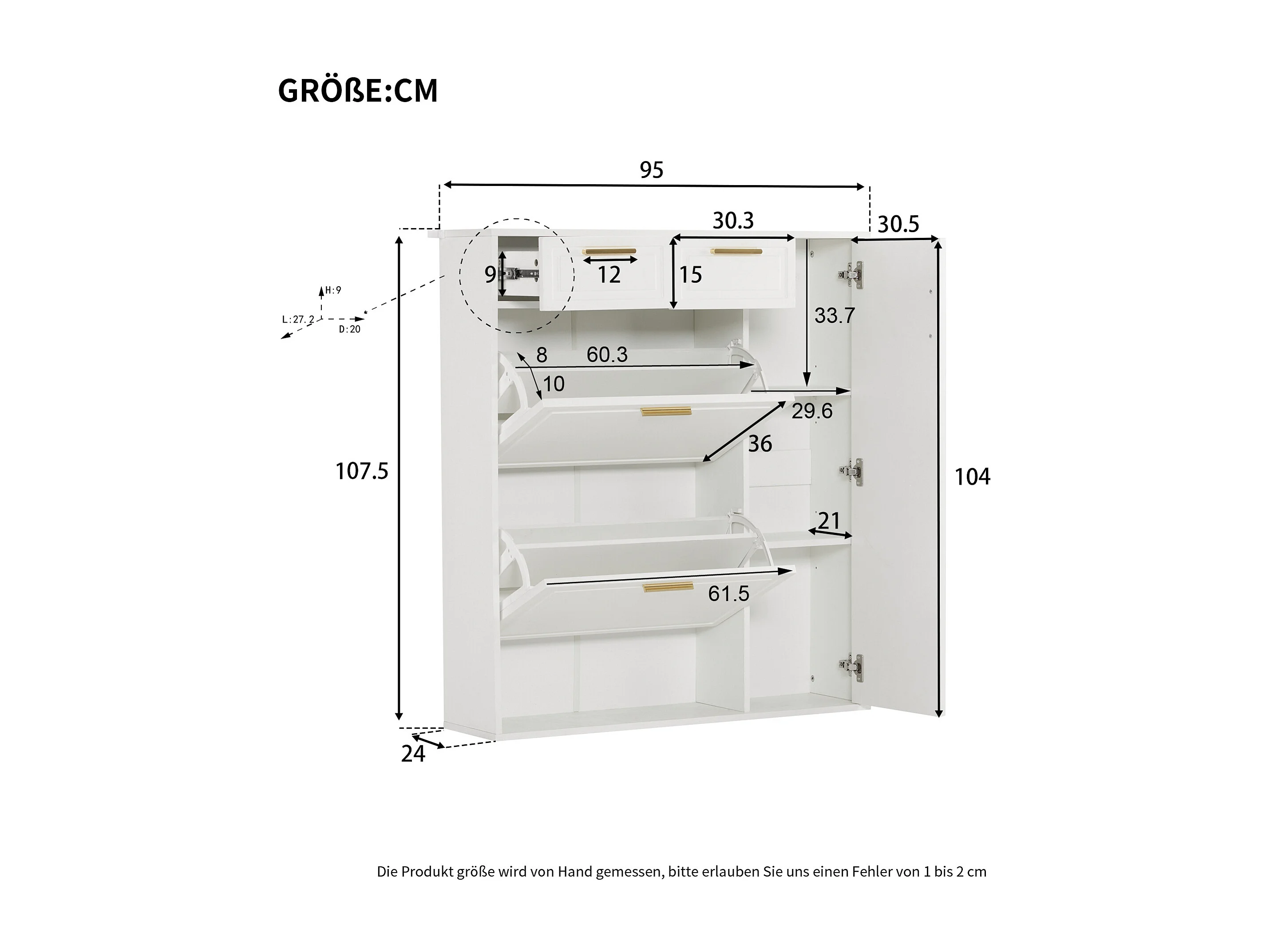 Schoenenkast 95x24x107,5 cm met verstelbare tussenwand, wit spaanplaat, voor woonkamer en hal