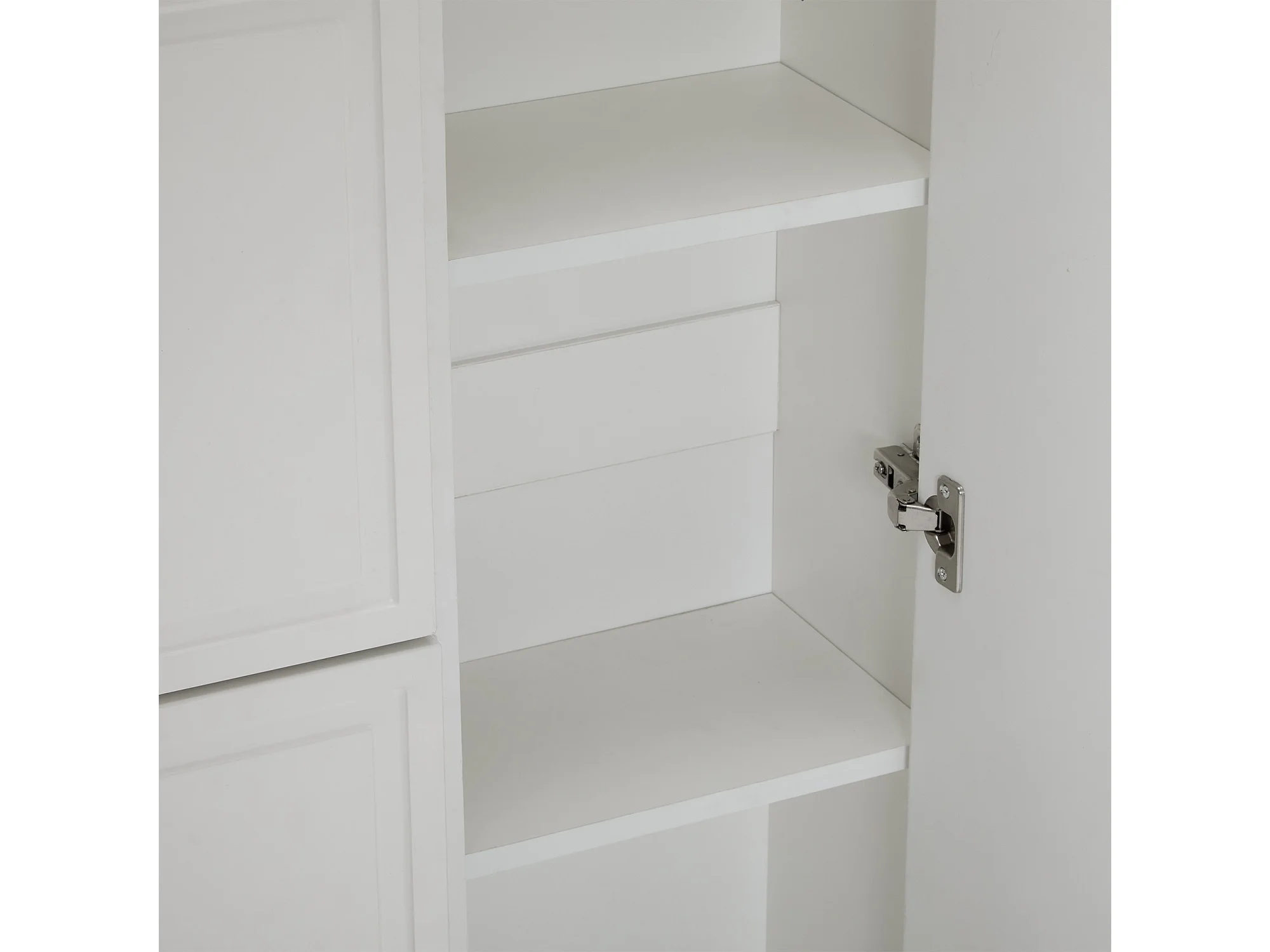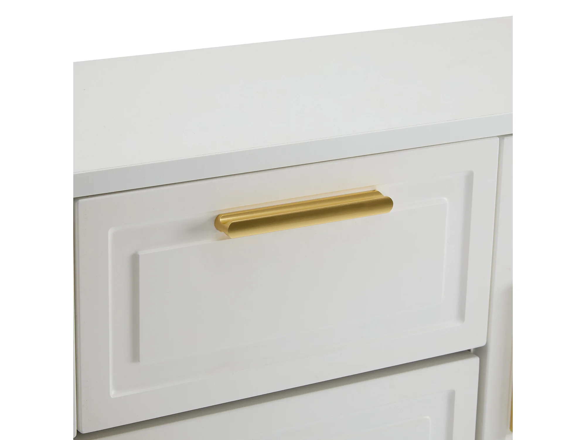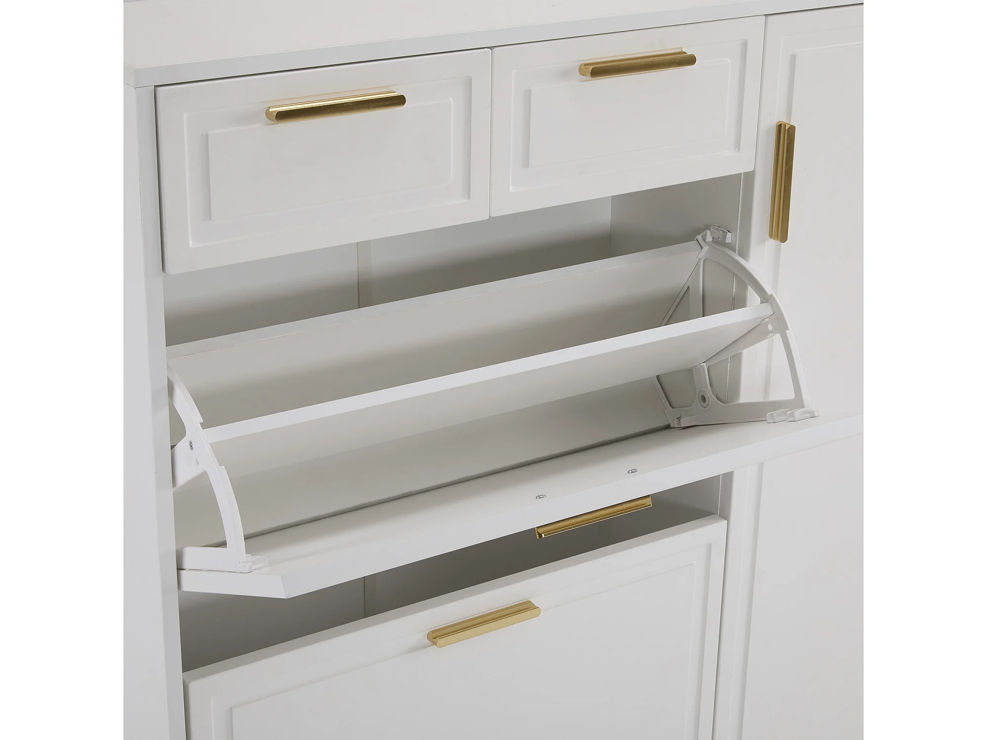 Witte schoenenkast met 1 lade en 3 deuren, gouden metalen handgrepen en poten