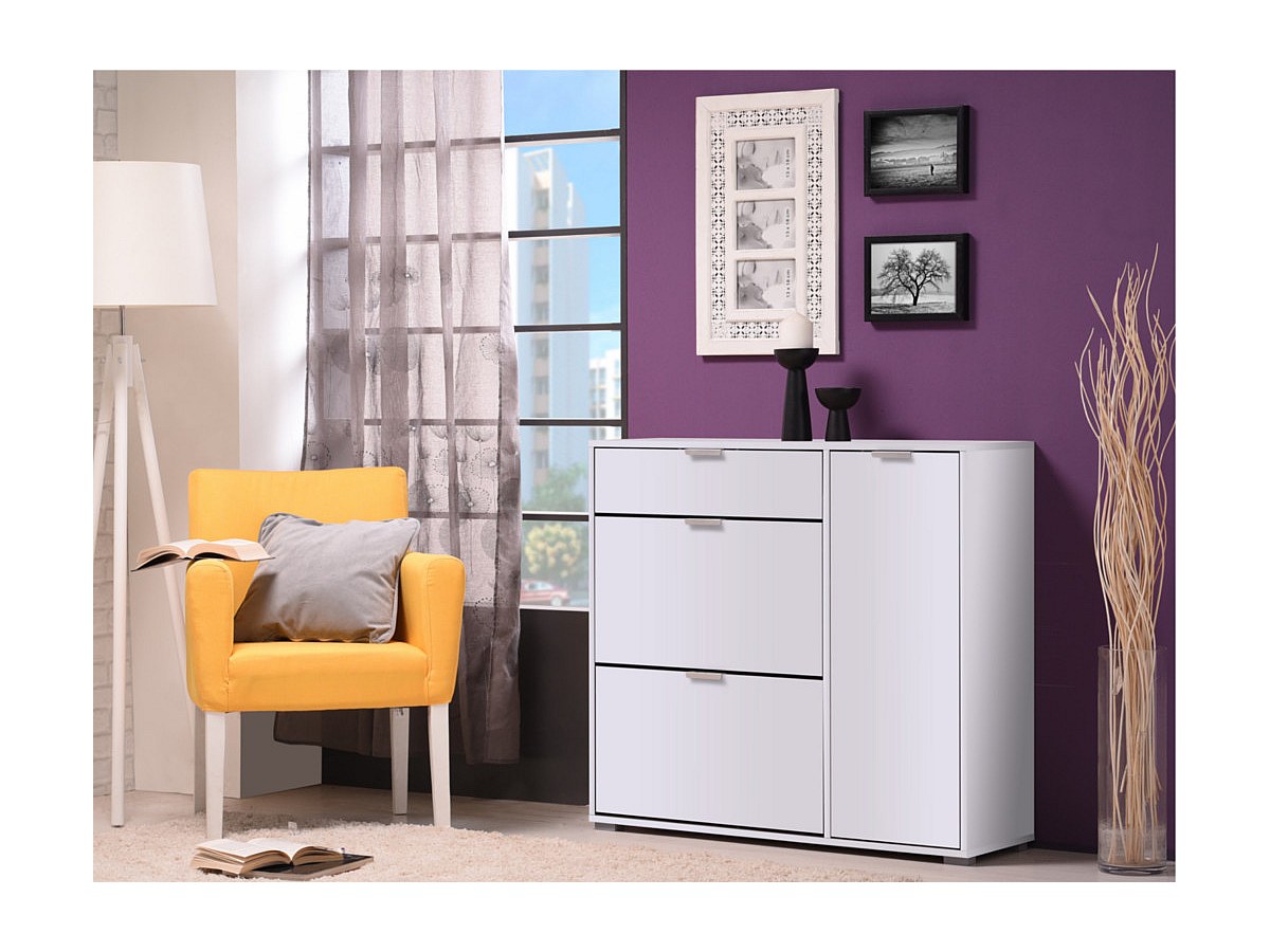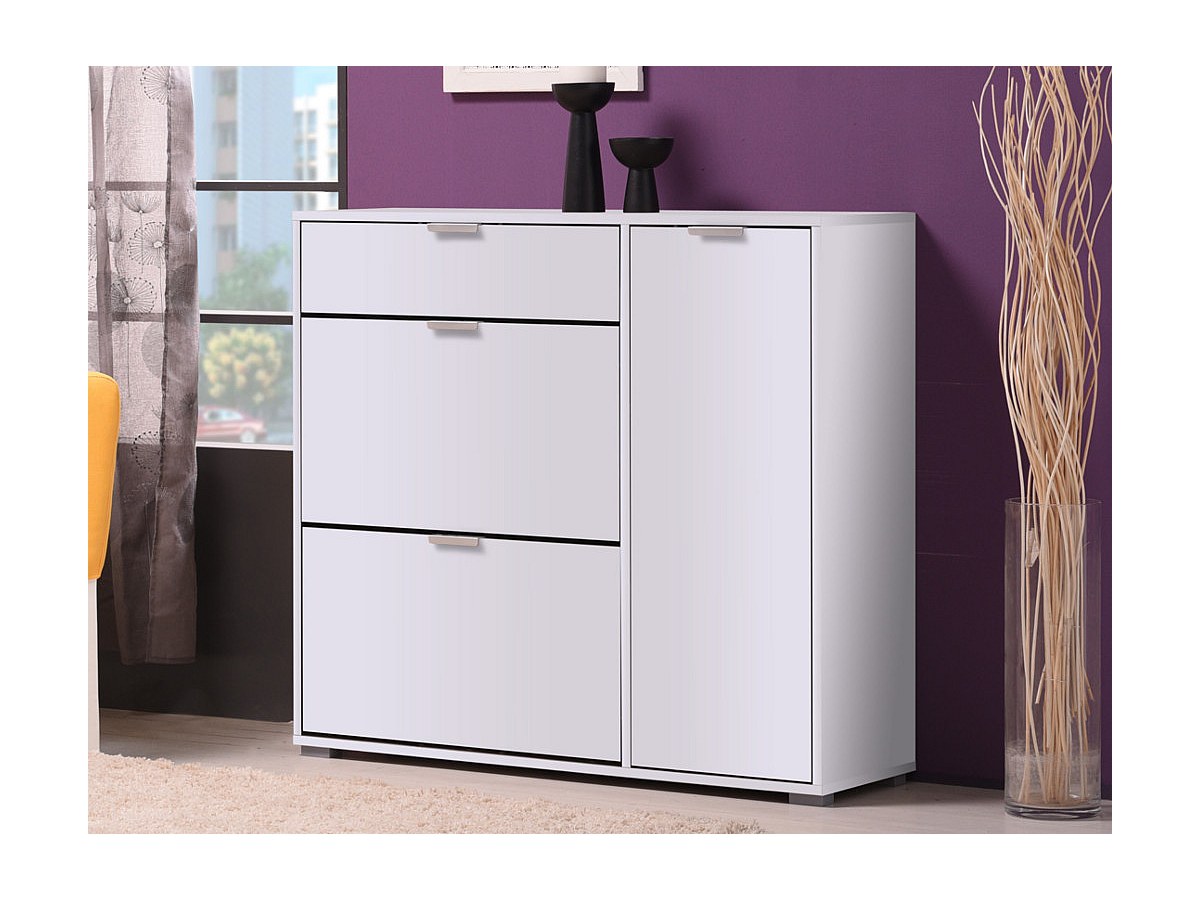 Schoenenkast ARIETTA - 2 vlakken, 1 deur en 1 lade - Kleur: wit