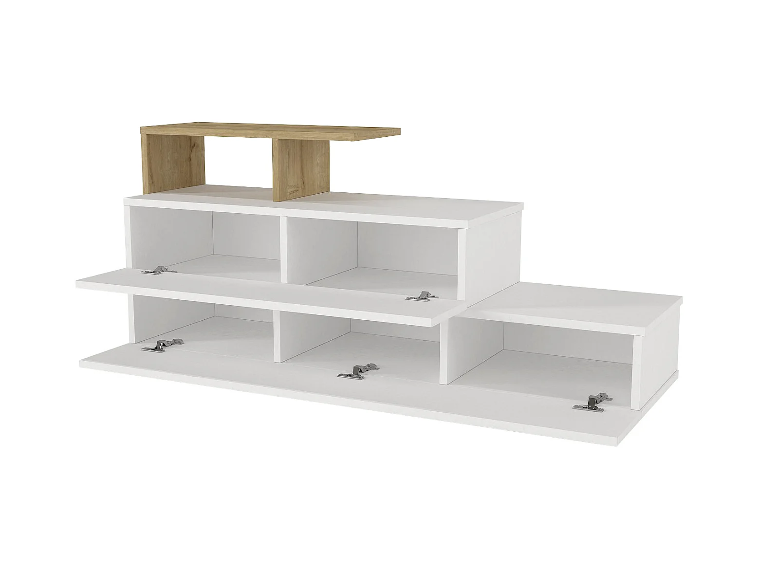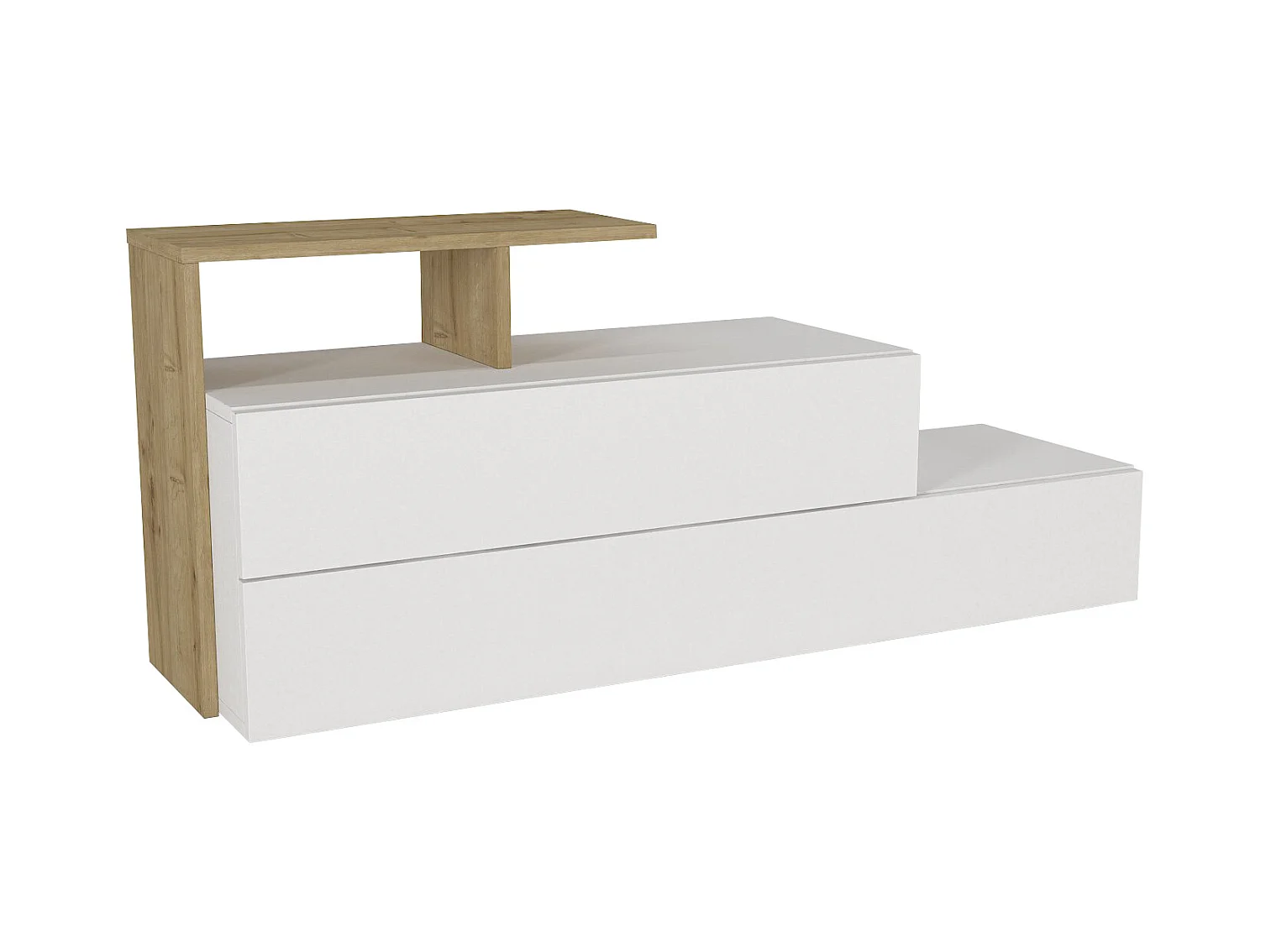 Schoenenkast met 2 deurtjes en 1 legplank - Wit en houtlook - DAVISTA