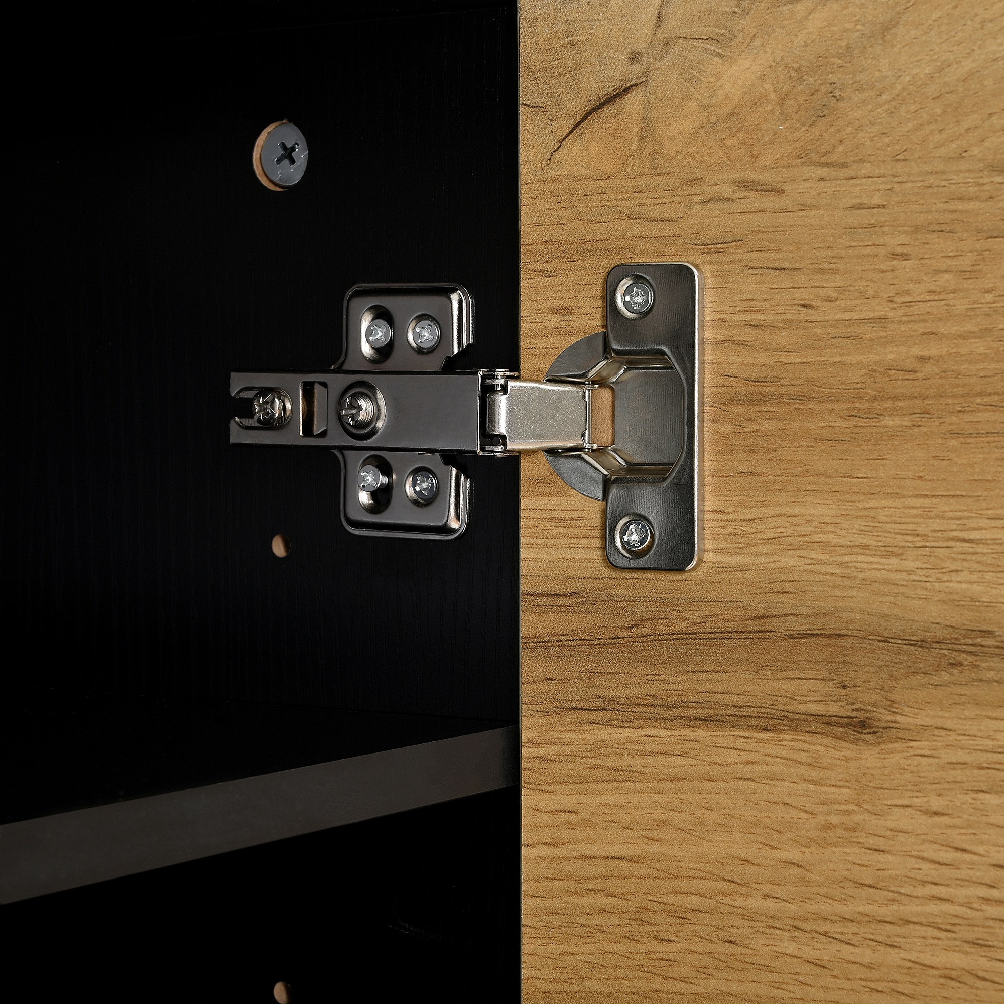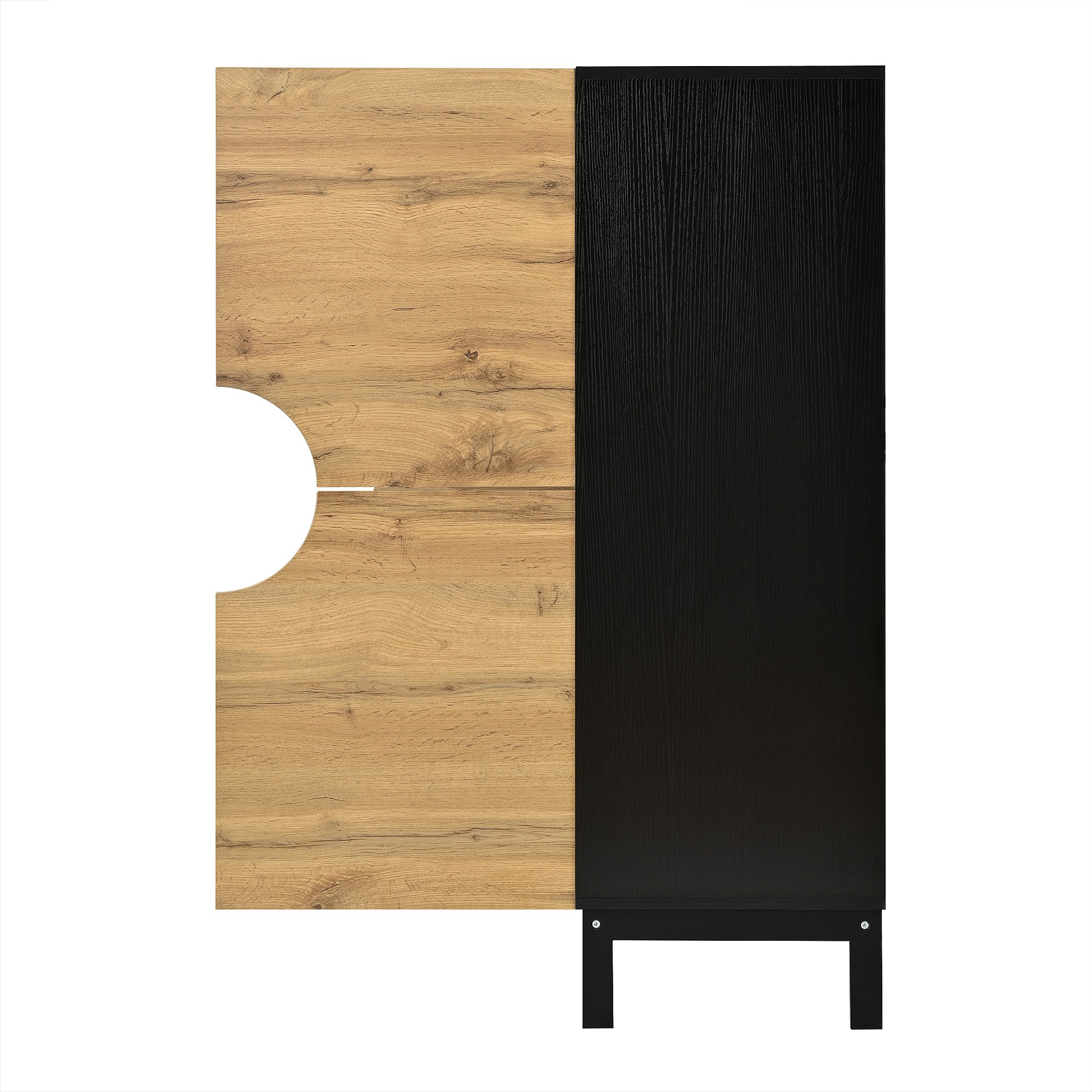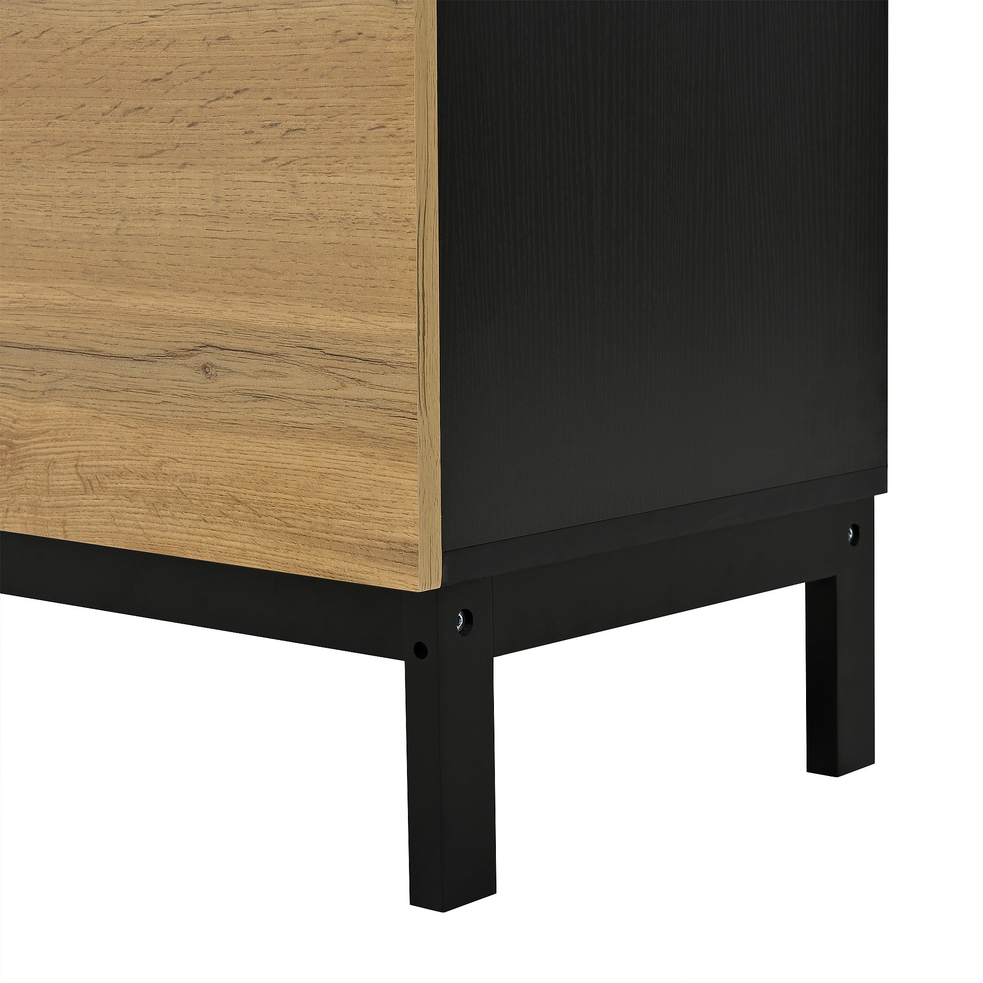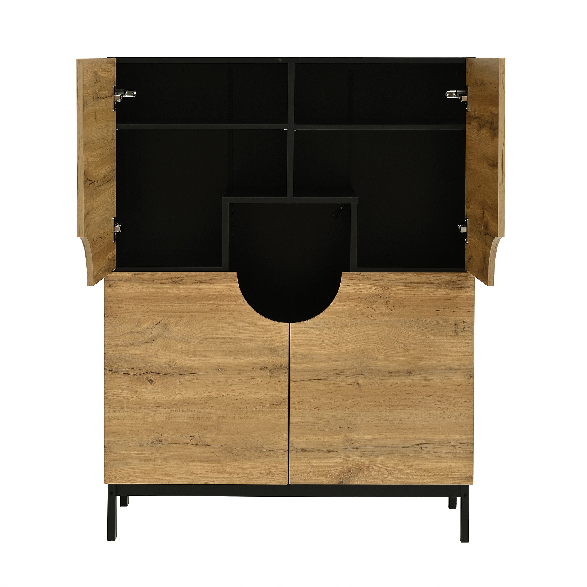 Schoenenkast met LED, 4 deuren in naturel hout en verstelbare planken - zwarte houten poten
