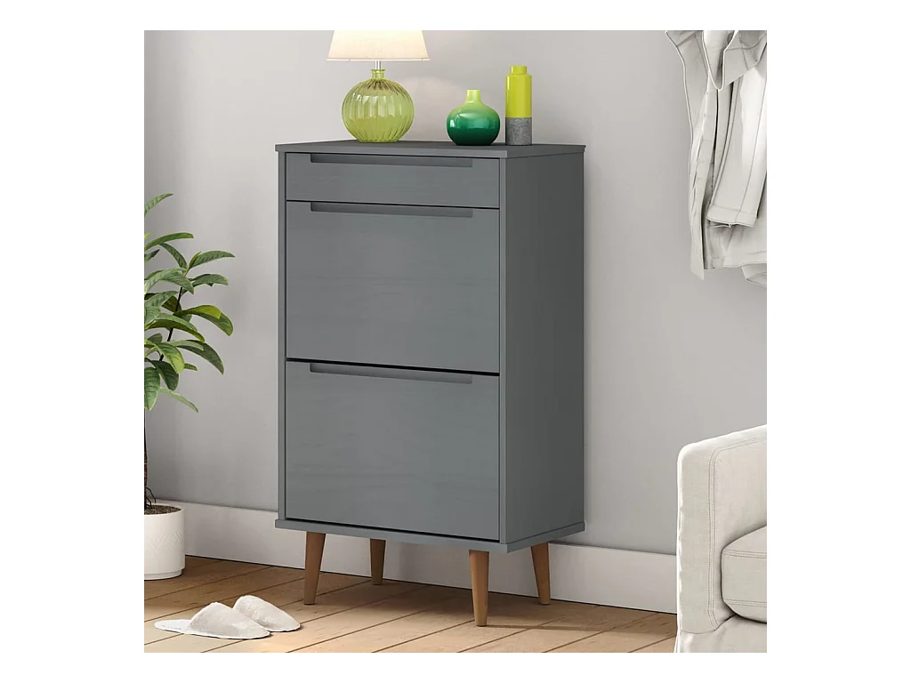 Schoenenkast MOLDE 59,5x35x103 cm massief grenenhout grijs BE785784