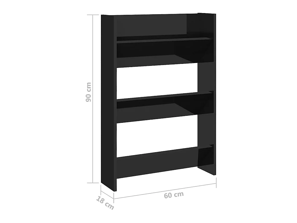 Schoenenkasten voor wandmontage 2 stuks Glanzend zwart 60x18x90 cm