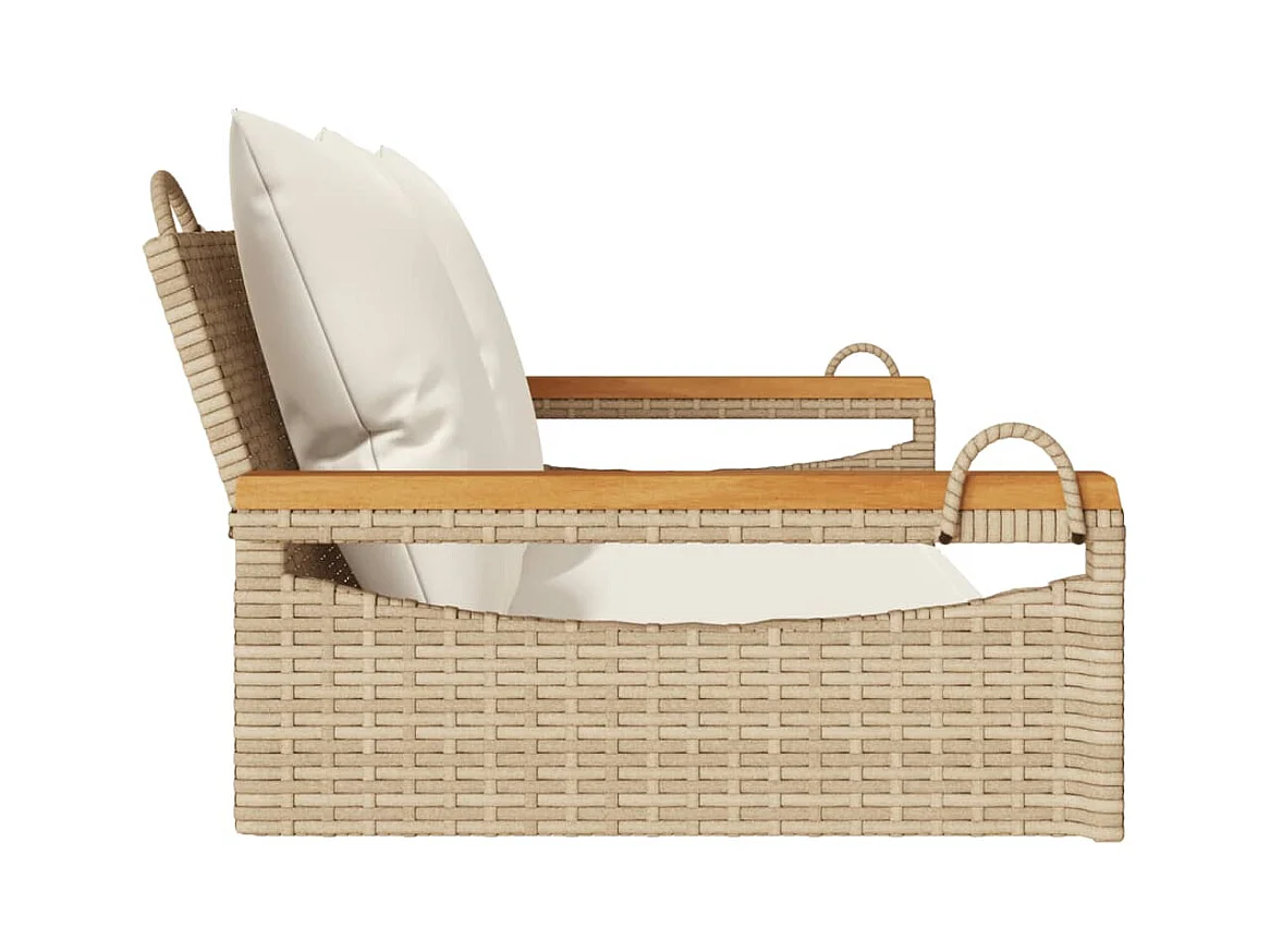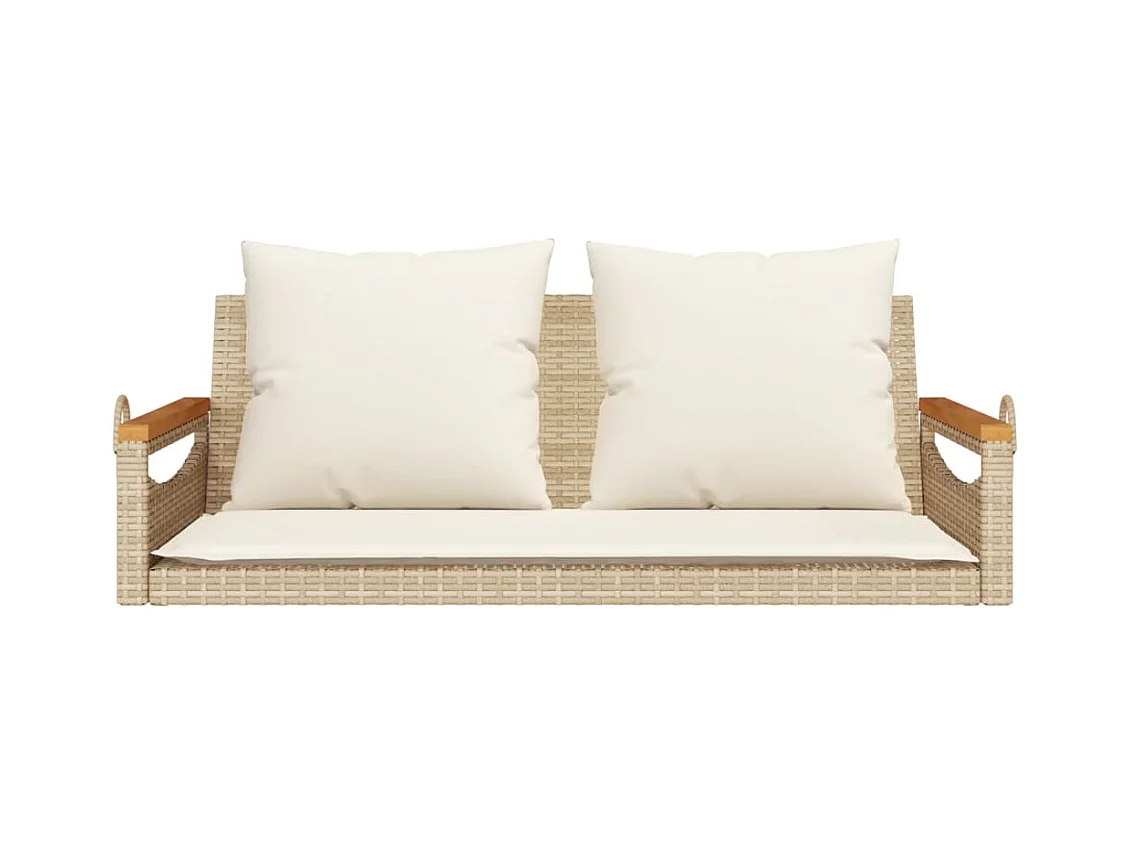 Schommel met beige kussens 109x62x40 cm geweven hars