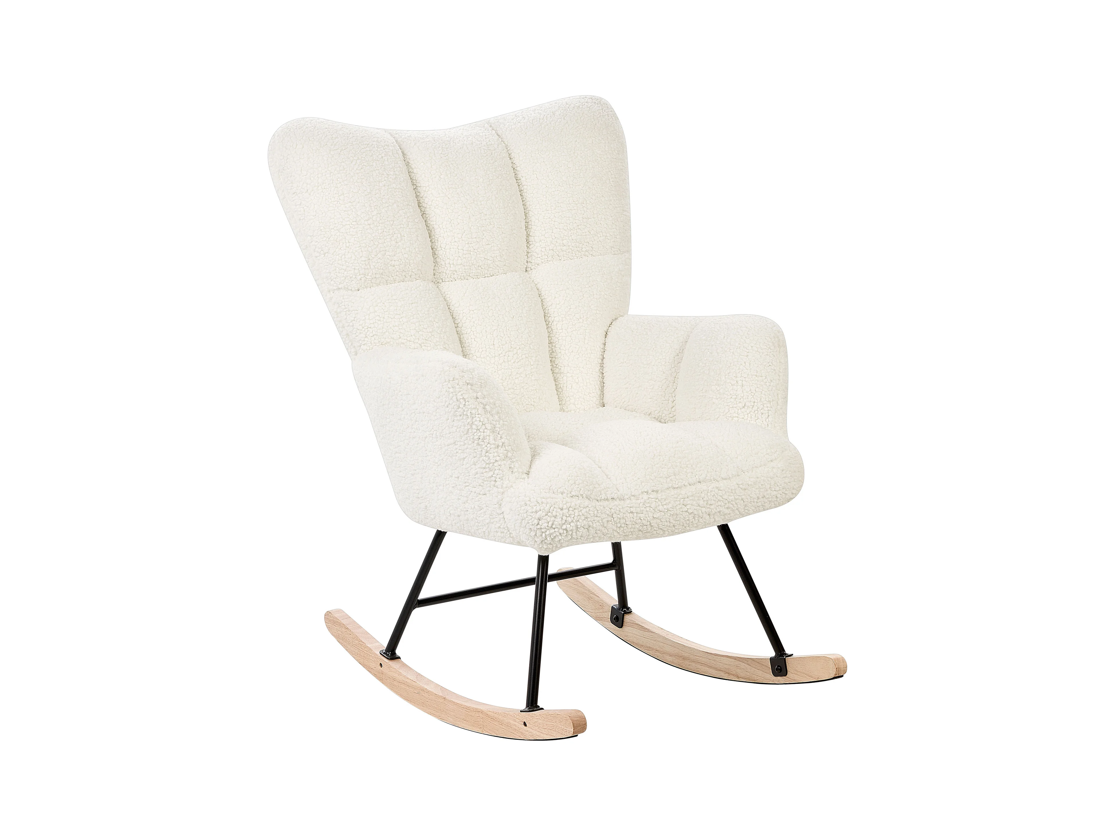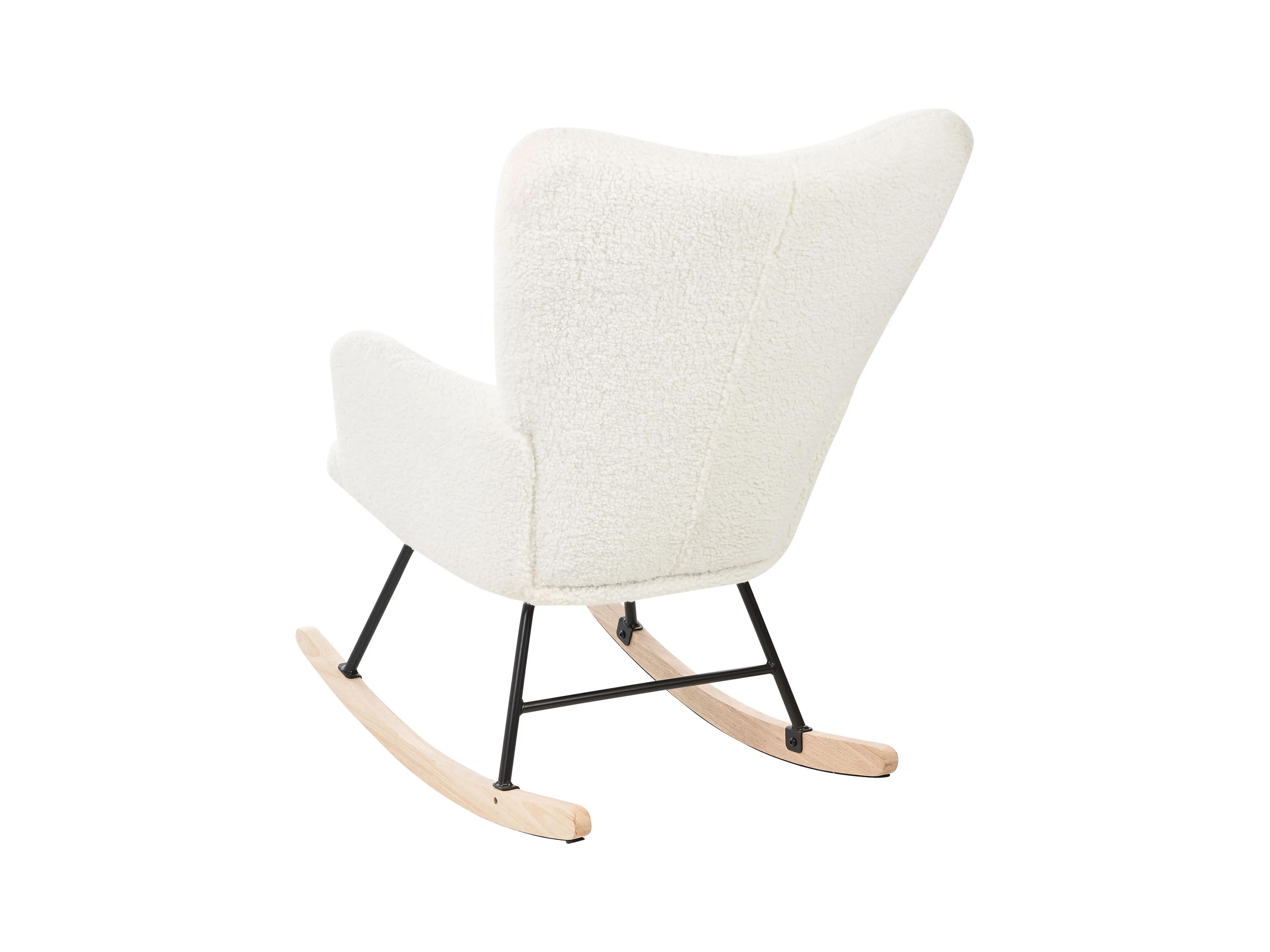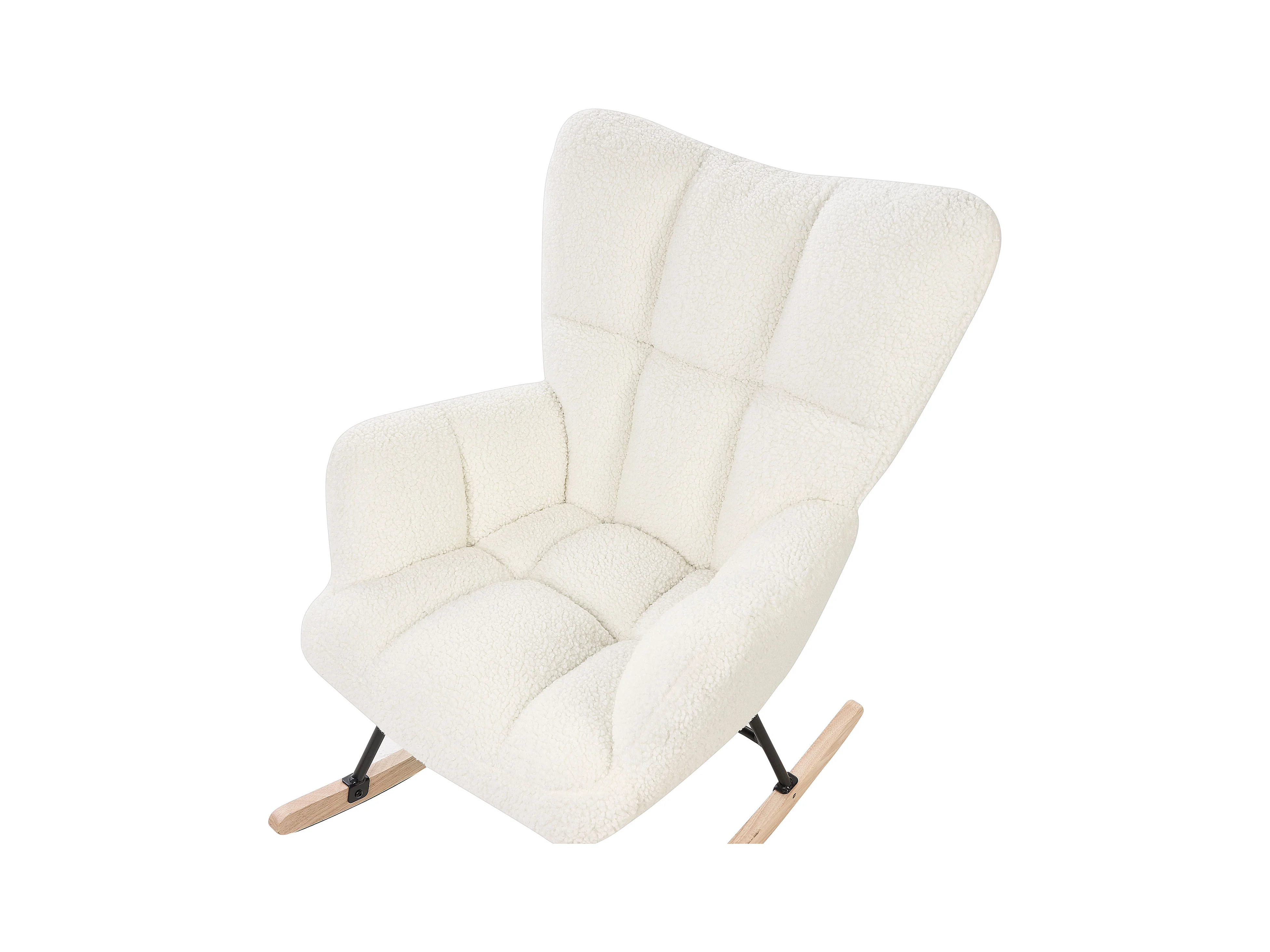 Schommelstoel met gewatteerde rugleuning, houten frame, Berberstof, wit (98x71x101 cm)