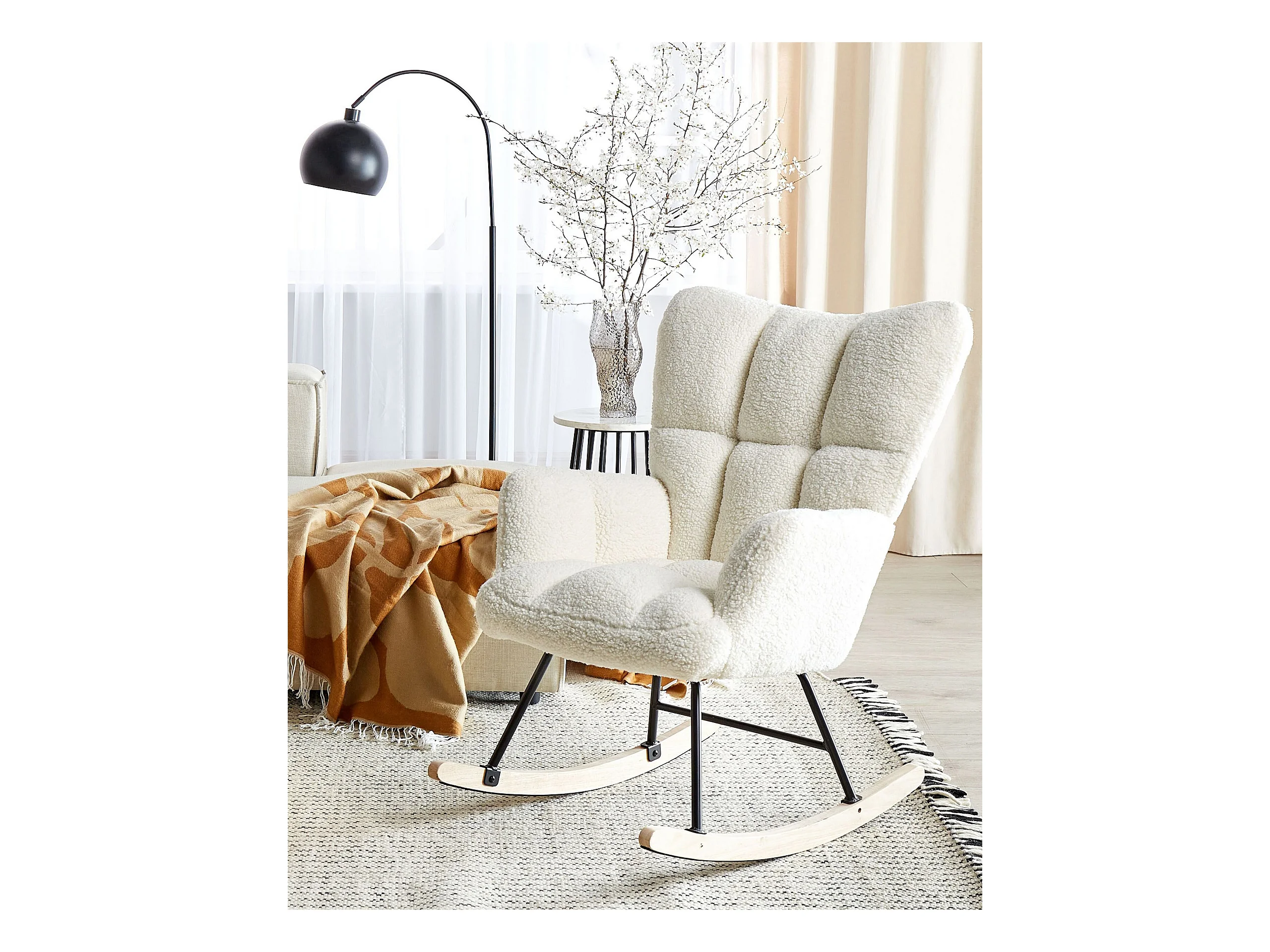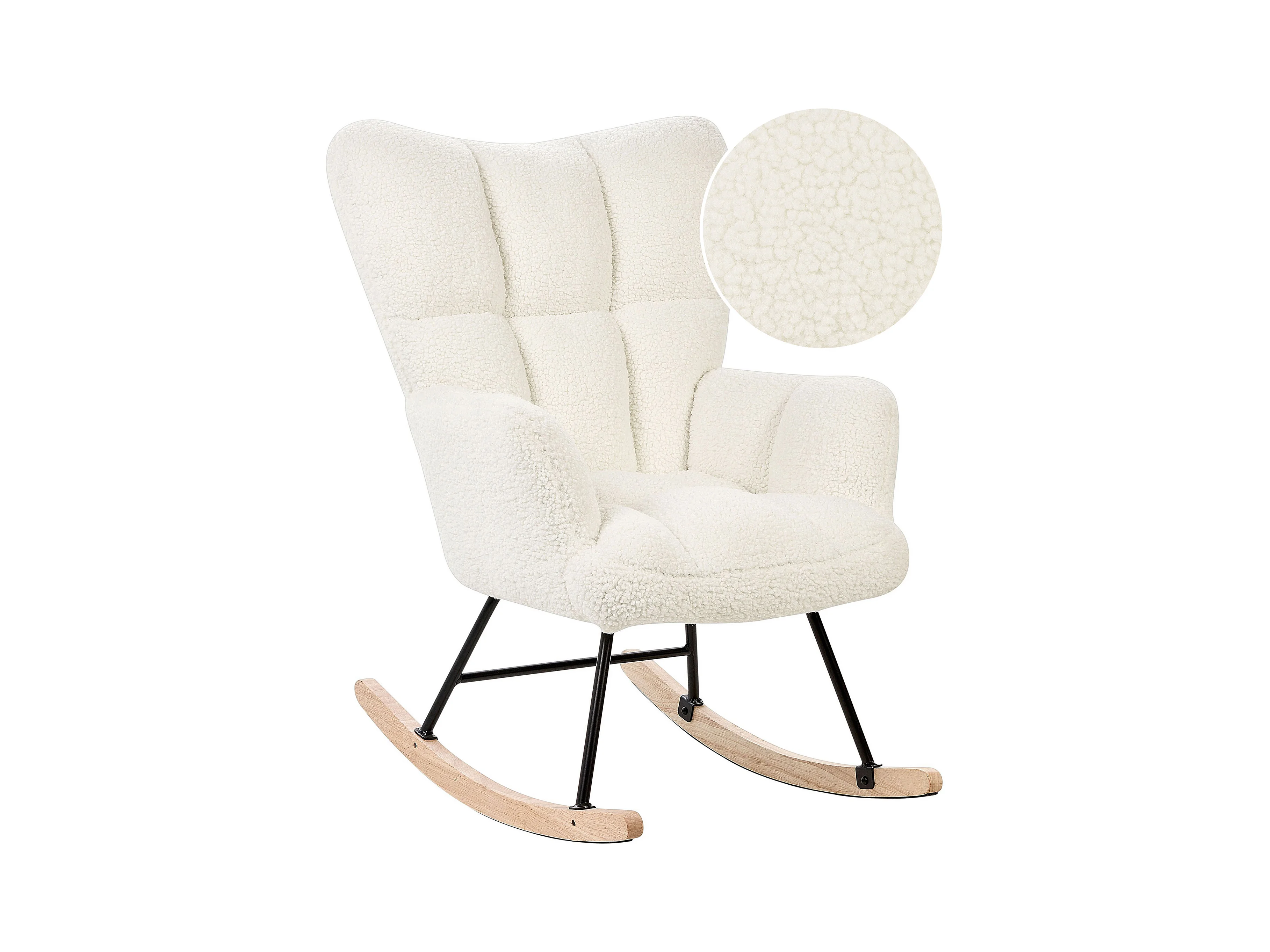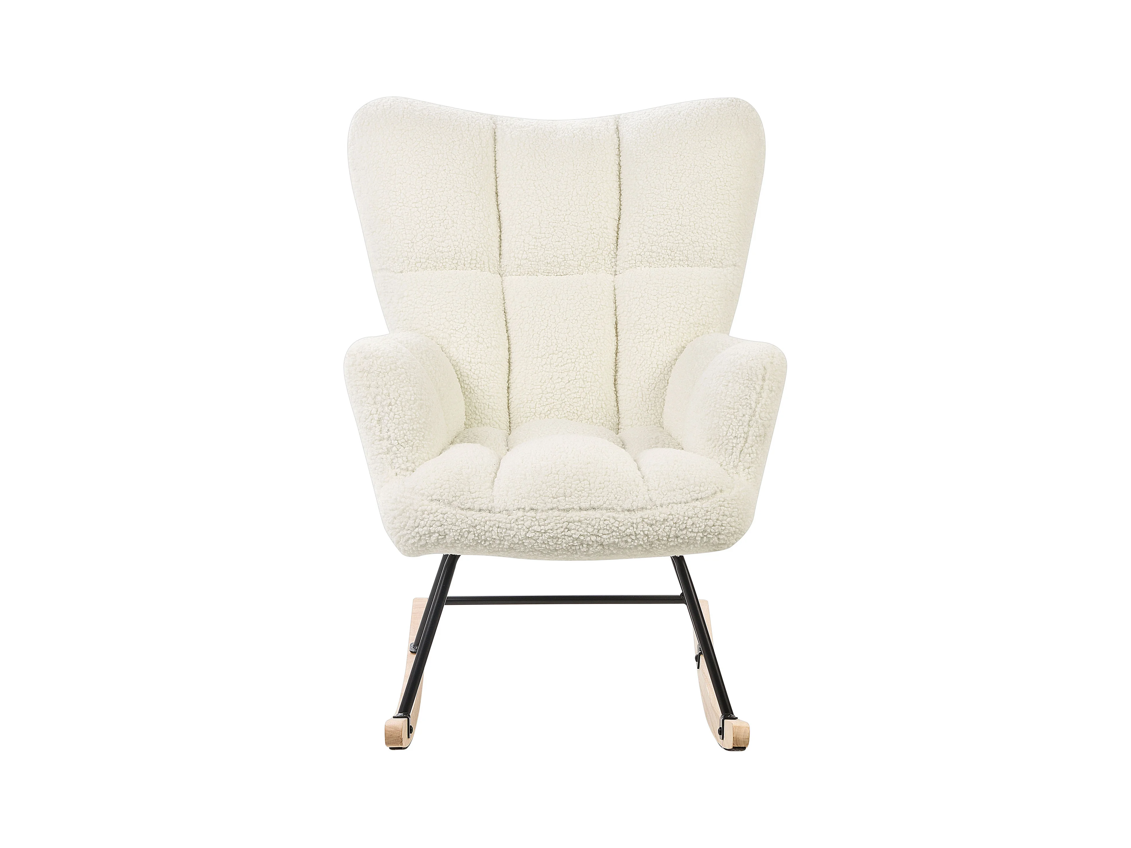 Schommelstoel met gewatteerde rugleuning, houten frame, Berberstof, wit (98x71x101 cm)