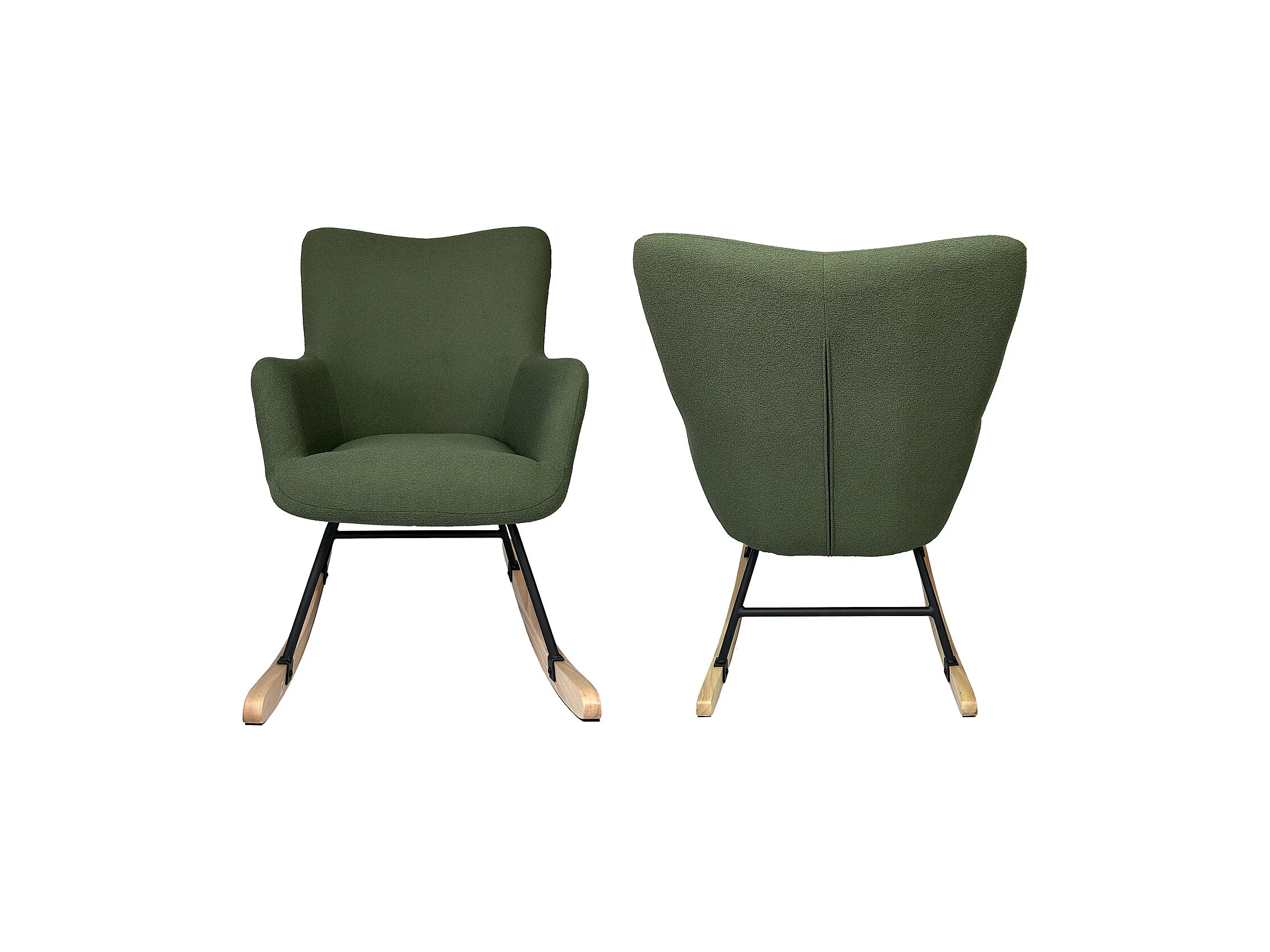 Schommelstoel in kaki groene lusstof KAIRA