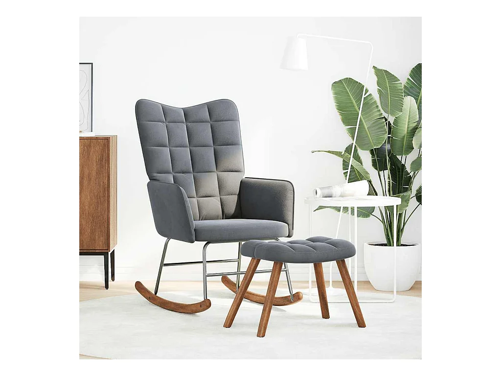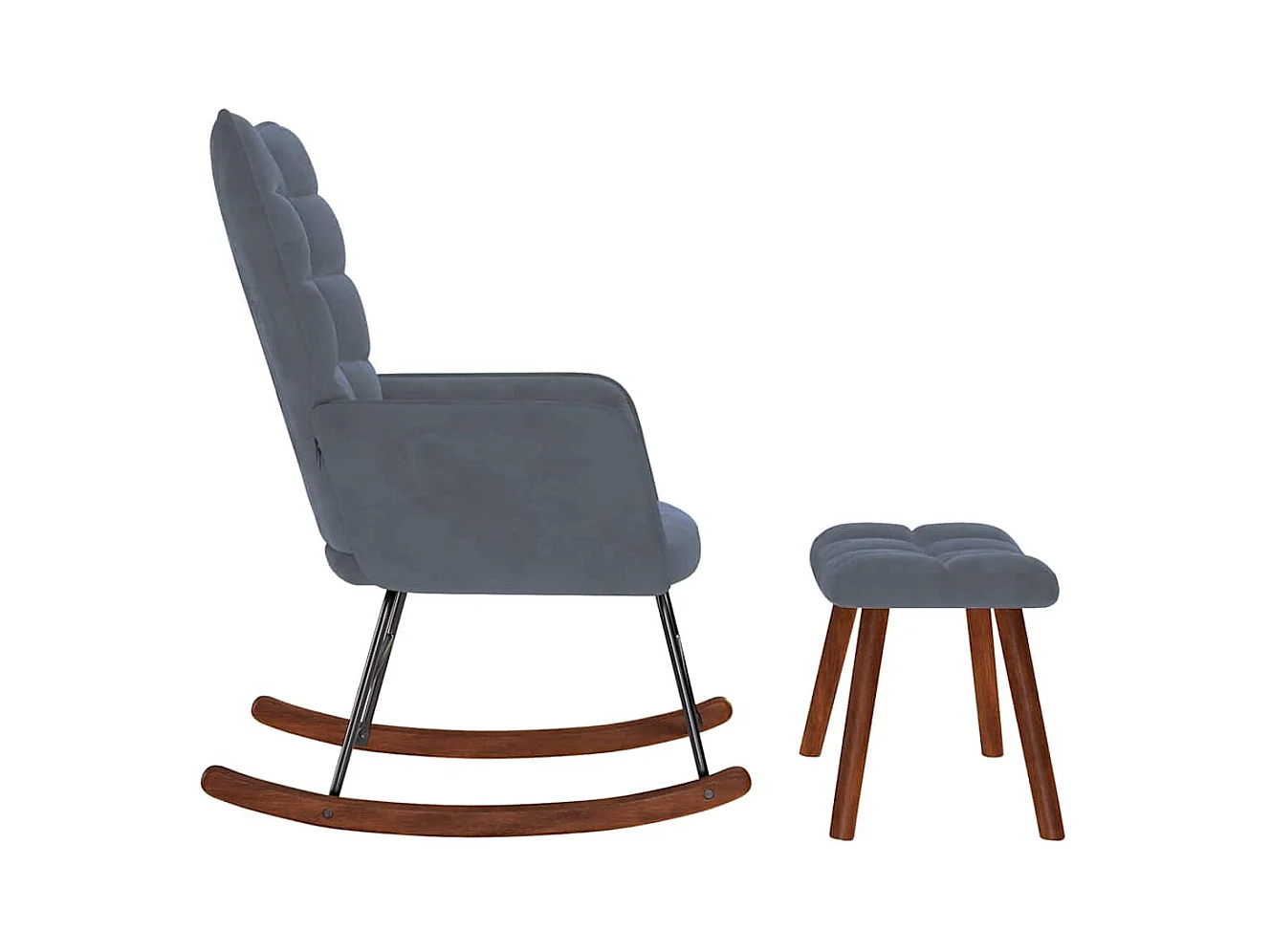 Schommelstoel met voetenbankje donkergrijs fluweel