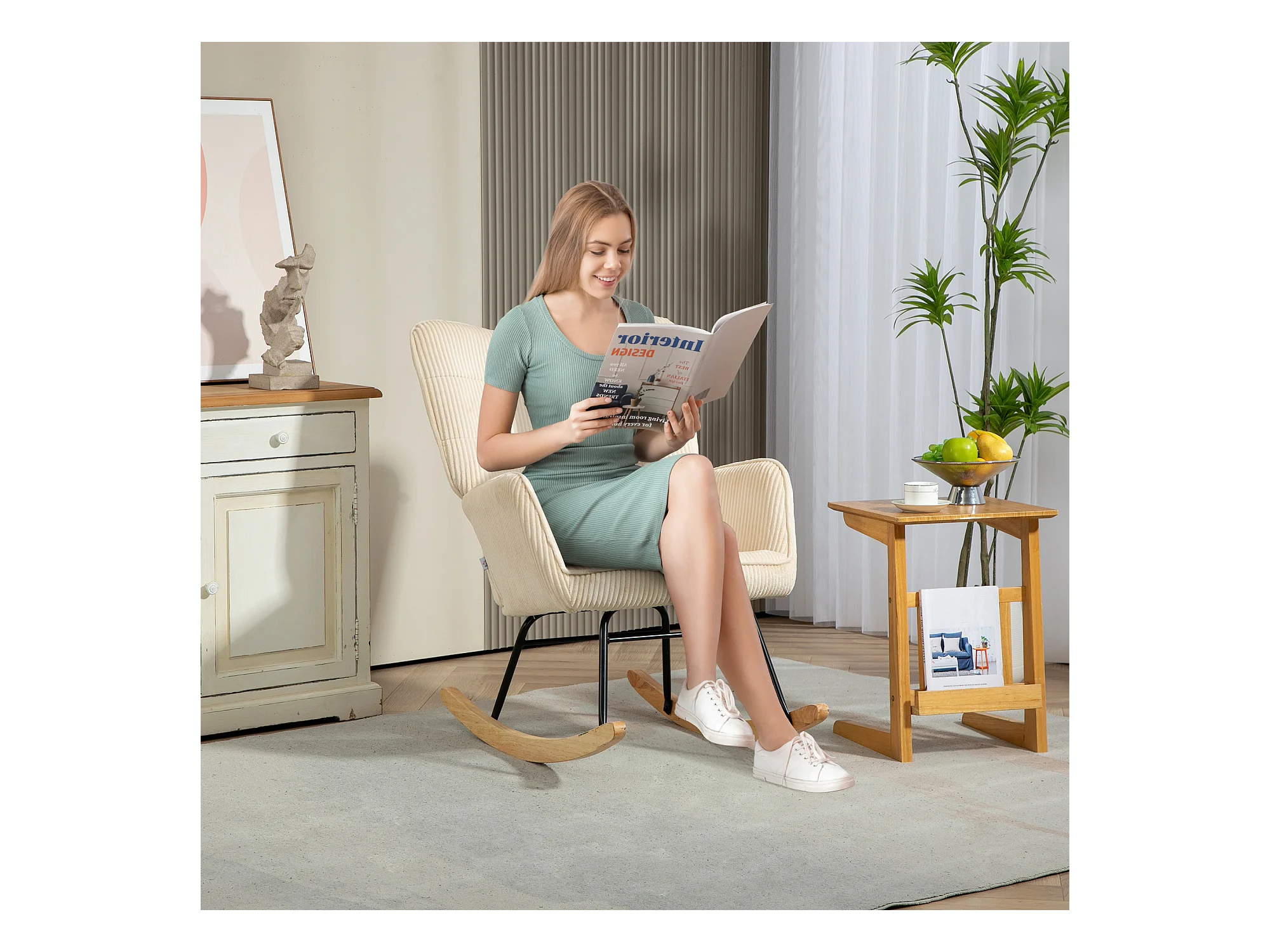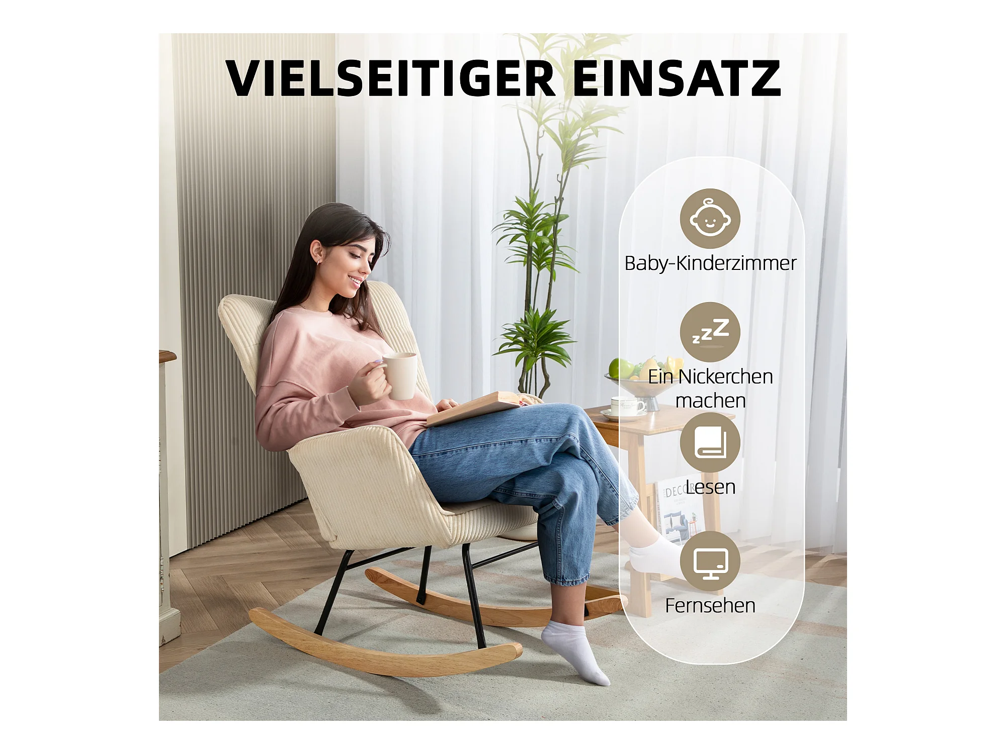 Schommelstoel, Relaxfauteuil met schommelfunctie, Fluweel, Beige (71x92x101 cm)