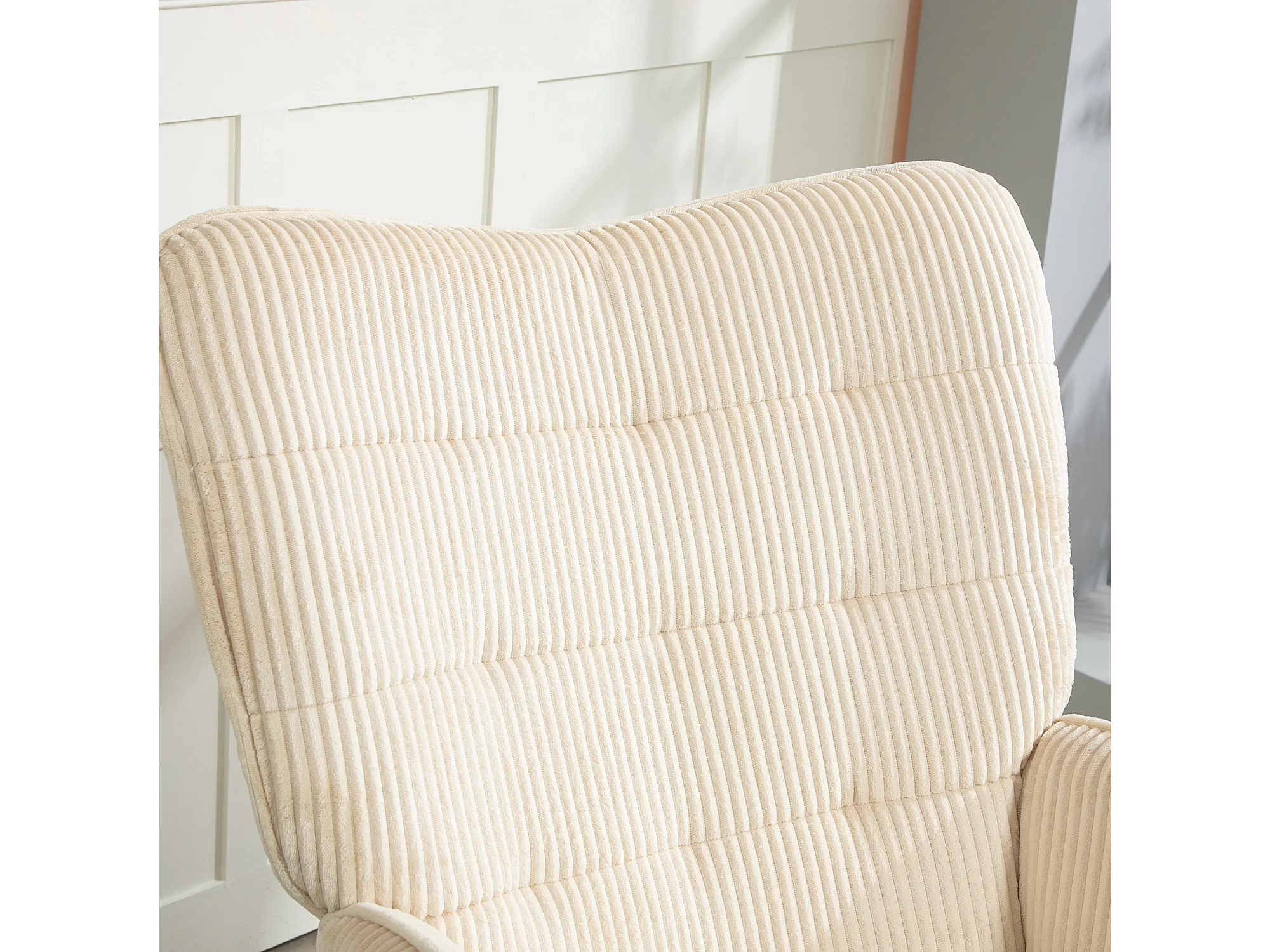 Fluwelen schommelstoel Pluche stof, massief houten frame, beige kleur met geïntegreerde voetenbank (132x50x99cm)