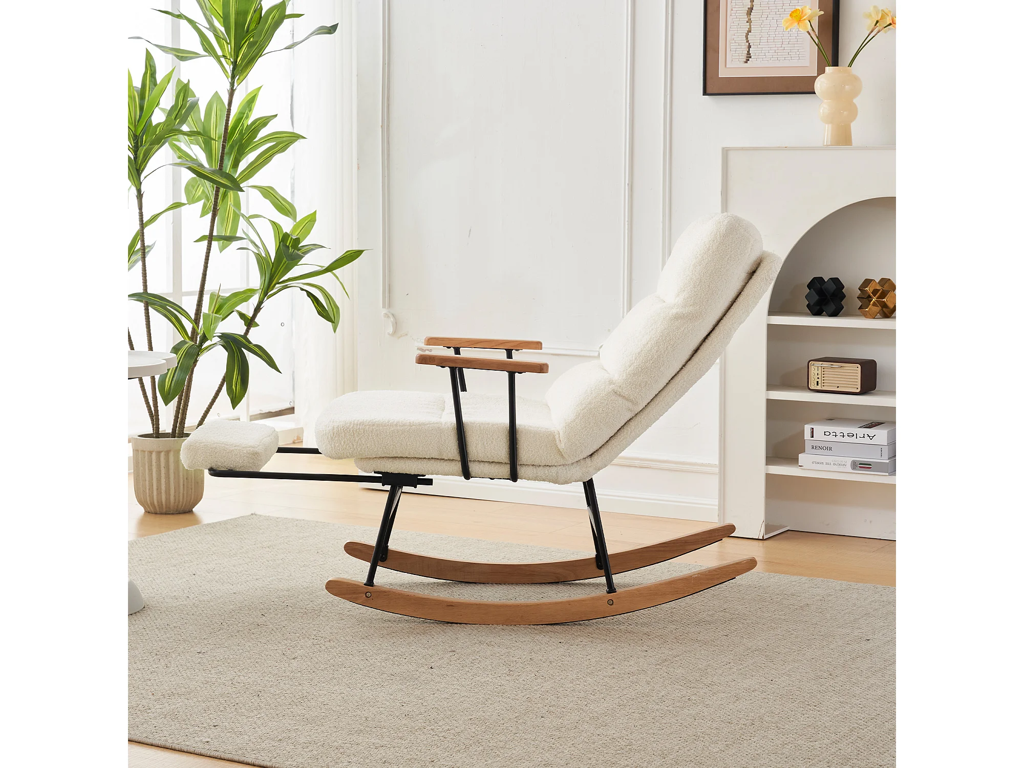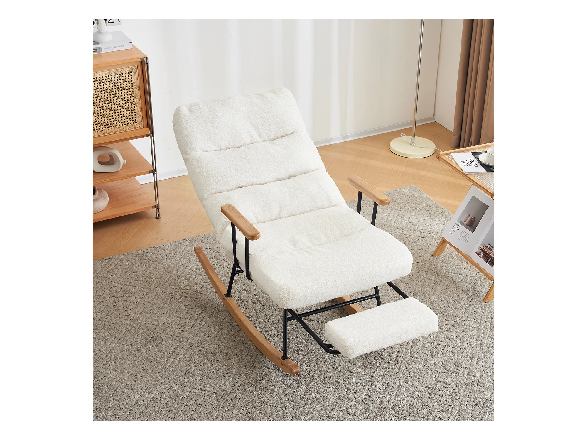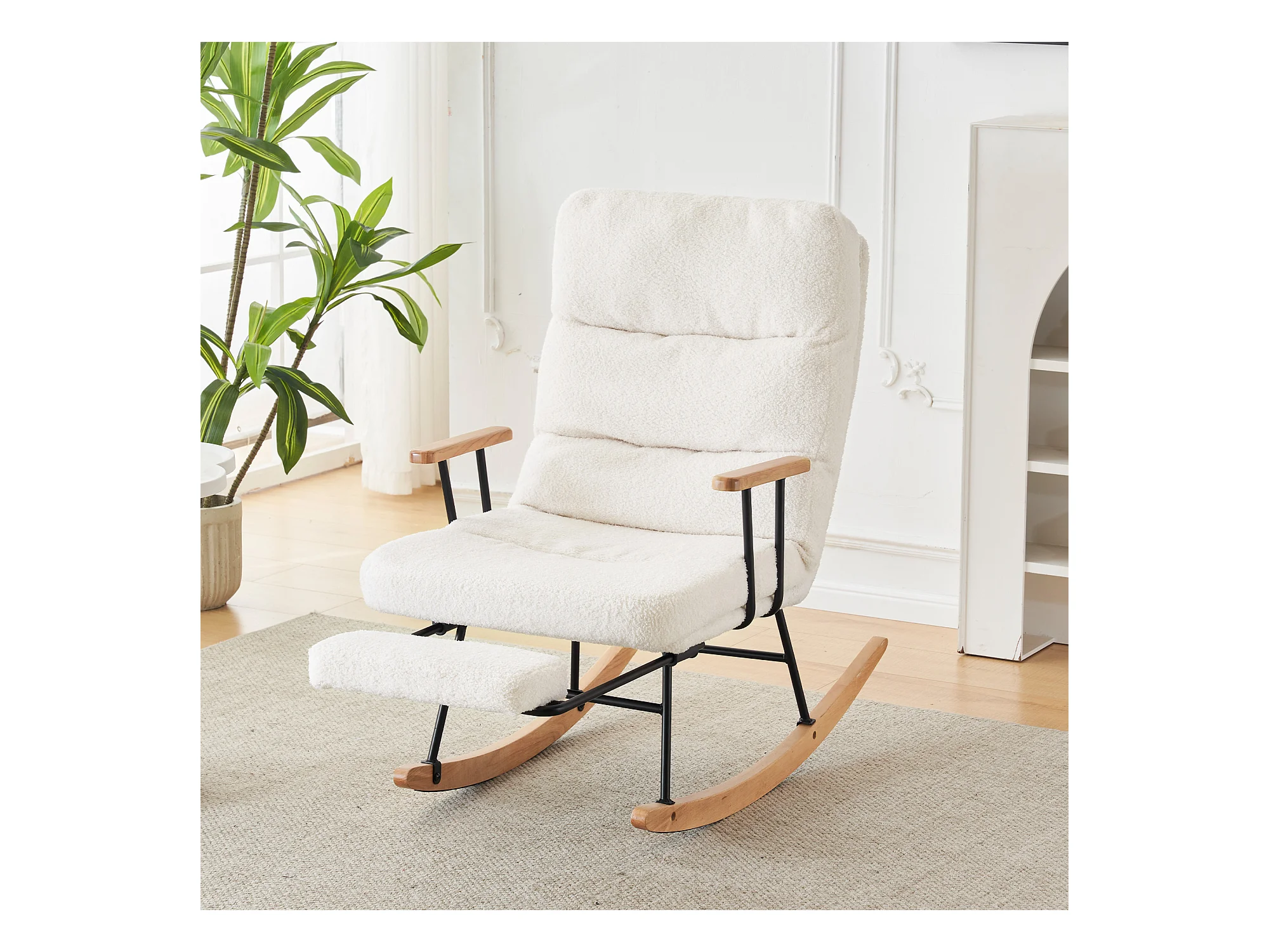 Moderne fluwelen teddy schommelstoel - schommelstoel met armleuningen, wit
